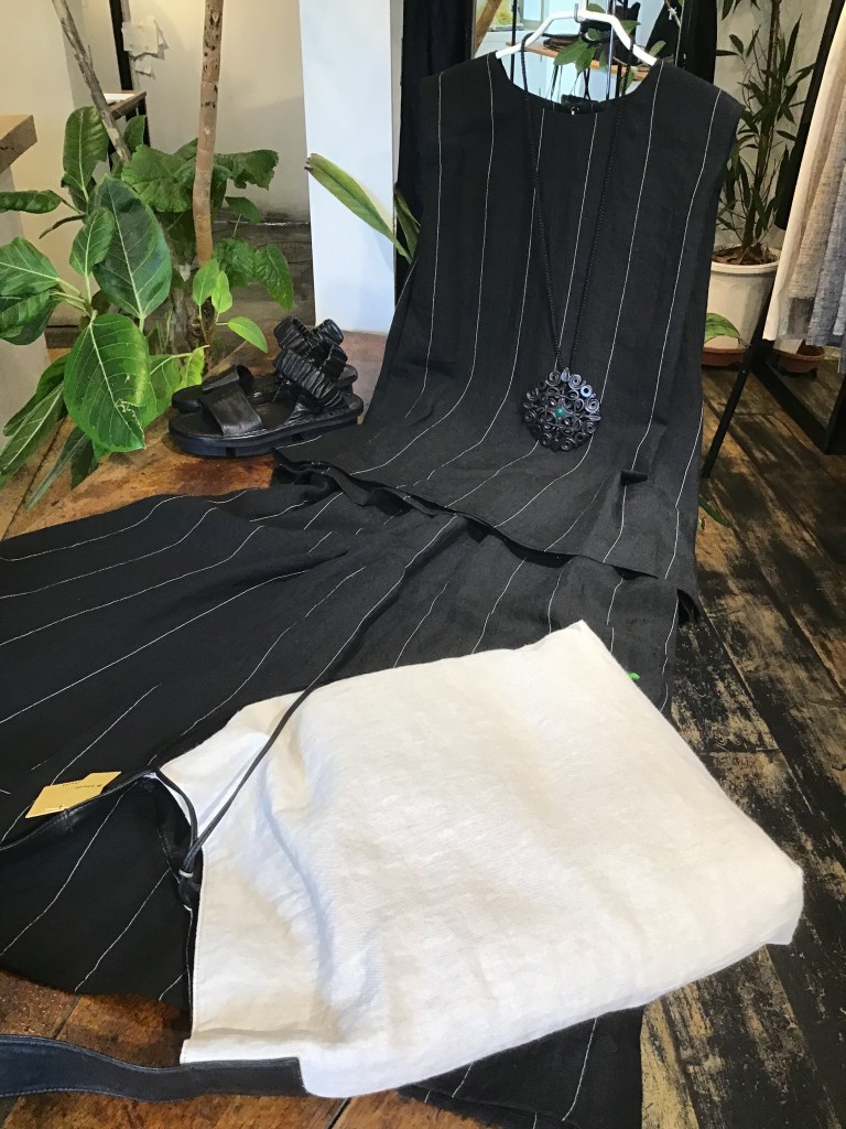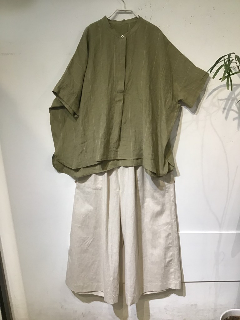 リネンの羽織もの、ワンピース揃ってます。