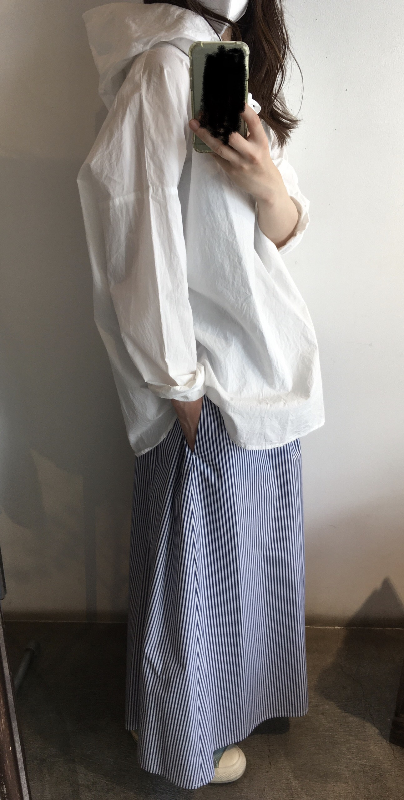 薄手の素材感なのですが、透けないので1枚でサラッと着れるのがいいんですよ。