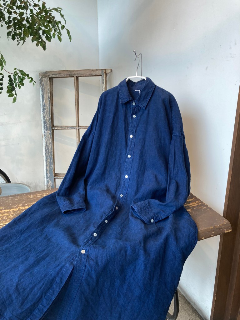 麻素材のシャツワンピース