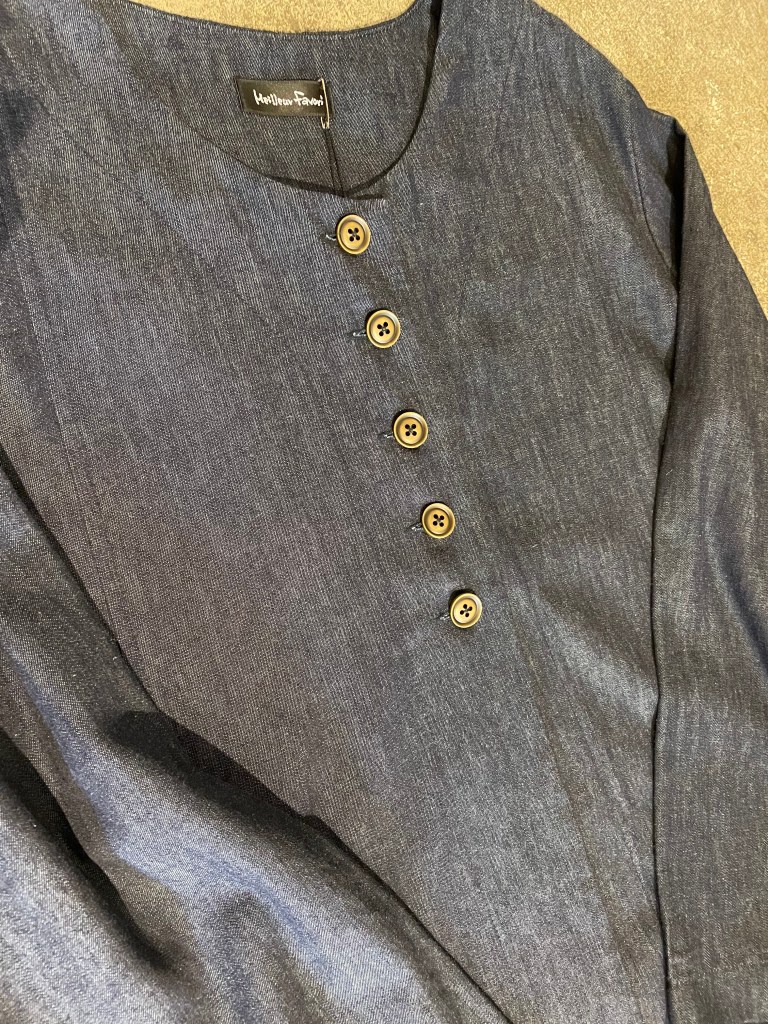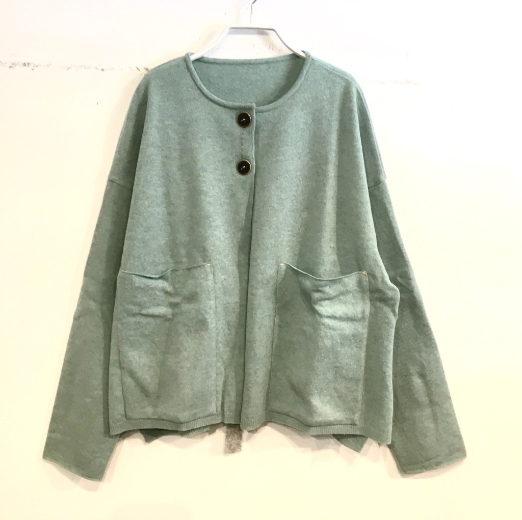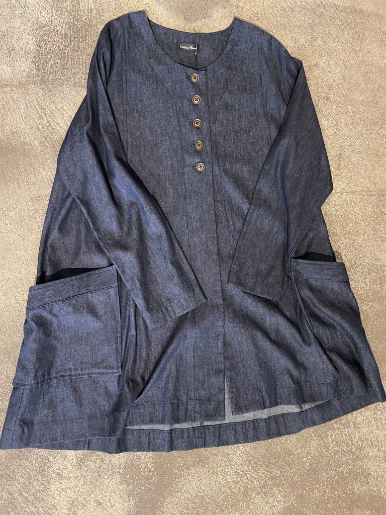 メイアファボリのデニムカーディガン。柔らかいデニムが着心地良さそうです。