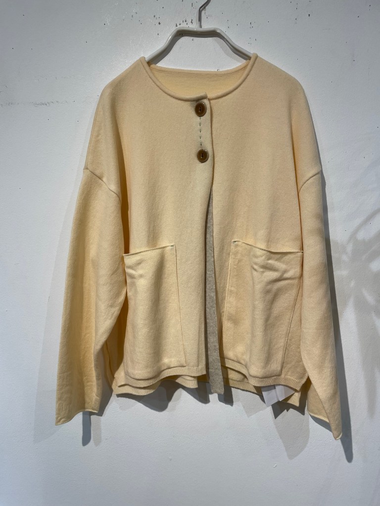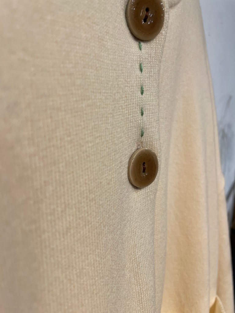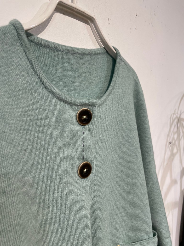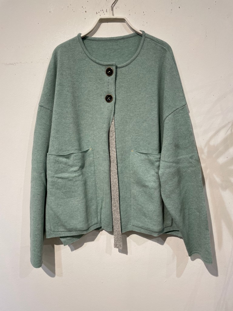 まずはカーディガン。写真では伝わりにくいですが綺麗なミントグリーン。