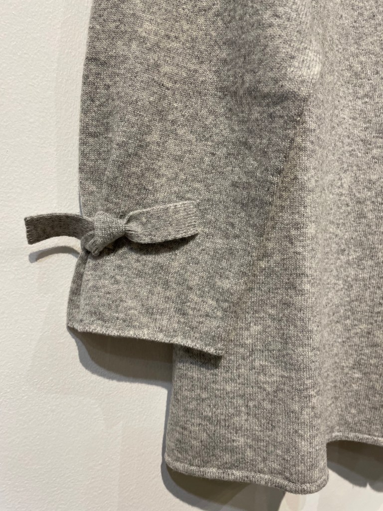 ¥51700 グレーのカーディガン ボタンの位置と袖もとのリボンが可愛らしい!