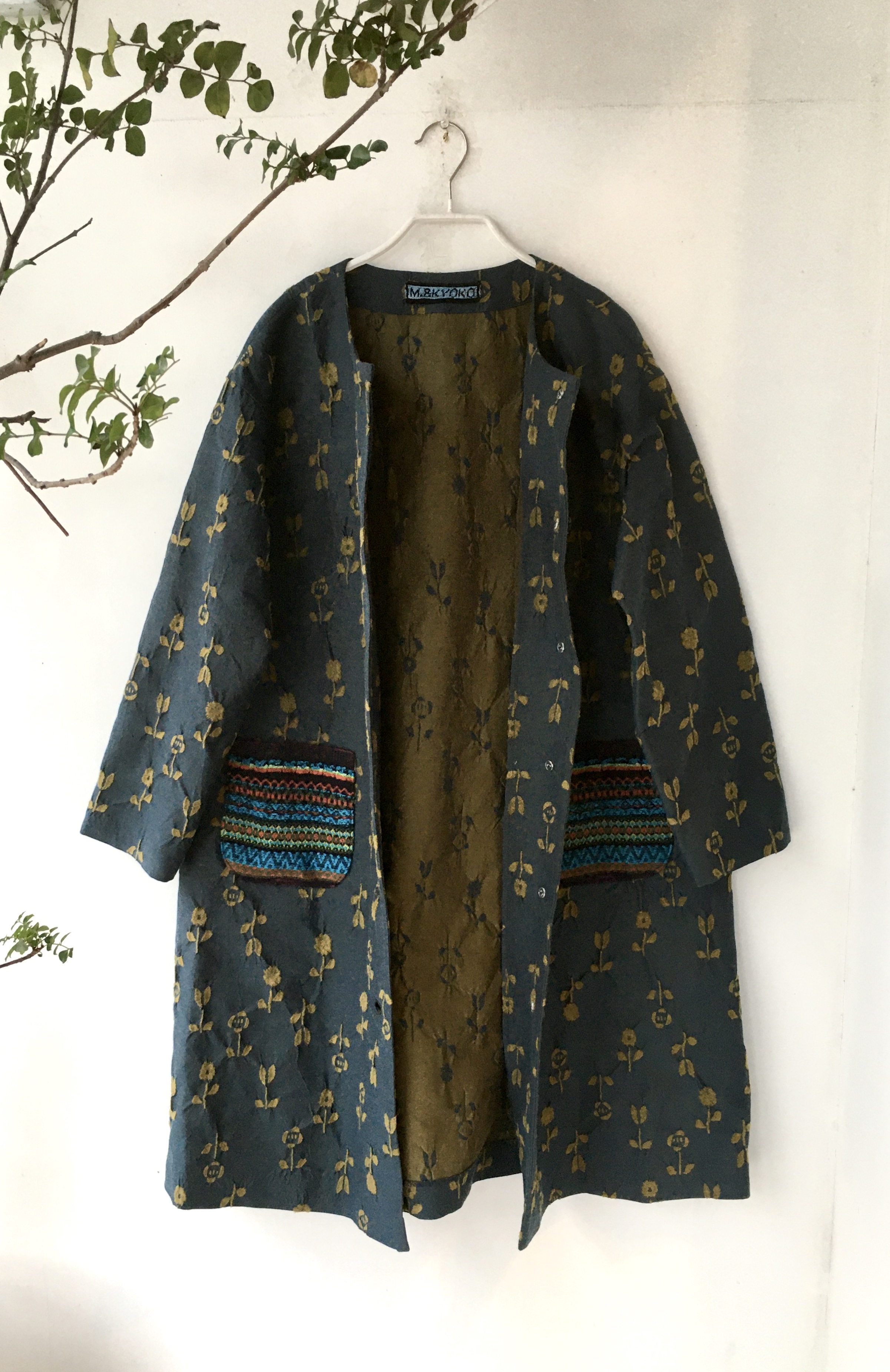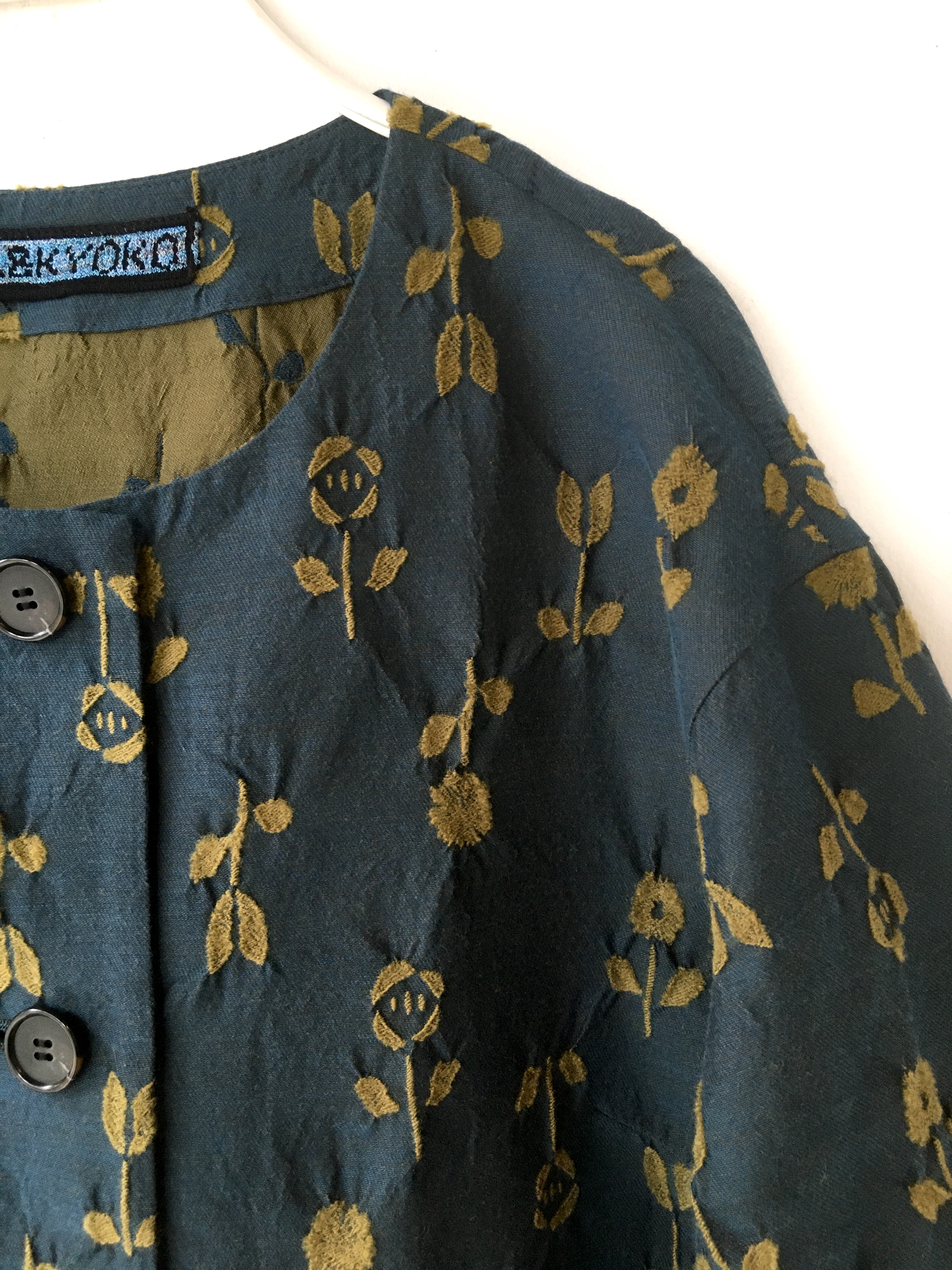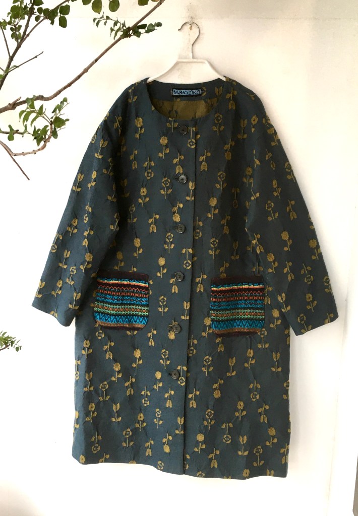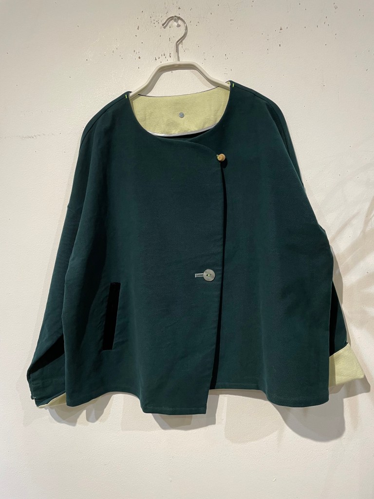 ¥48400 ジャケット。深いグリーンがオシャレで、折り返しの袖も綺麗な黄色。本当にお買い得の1点です。