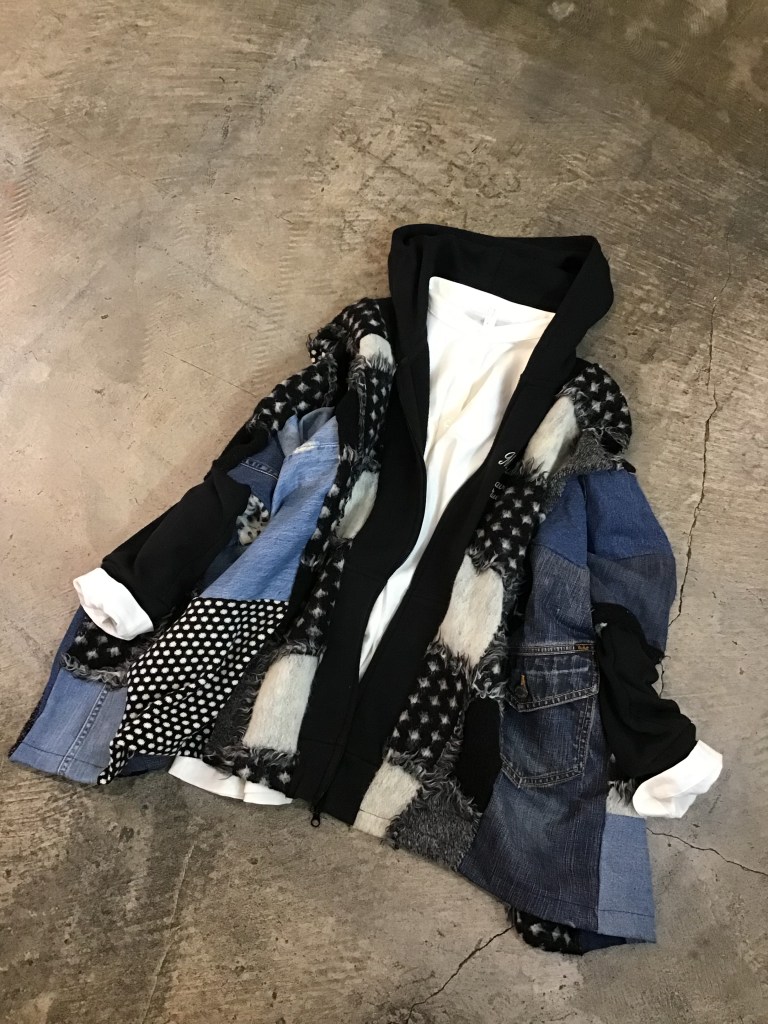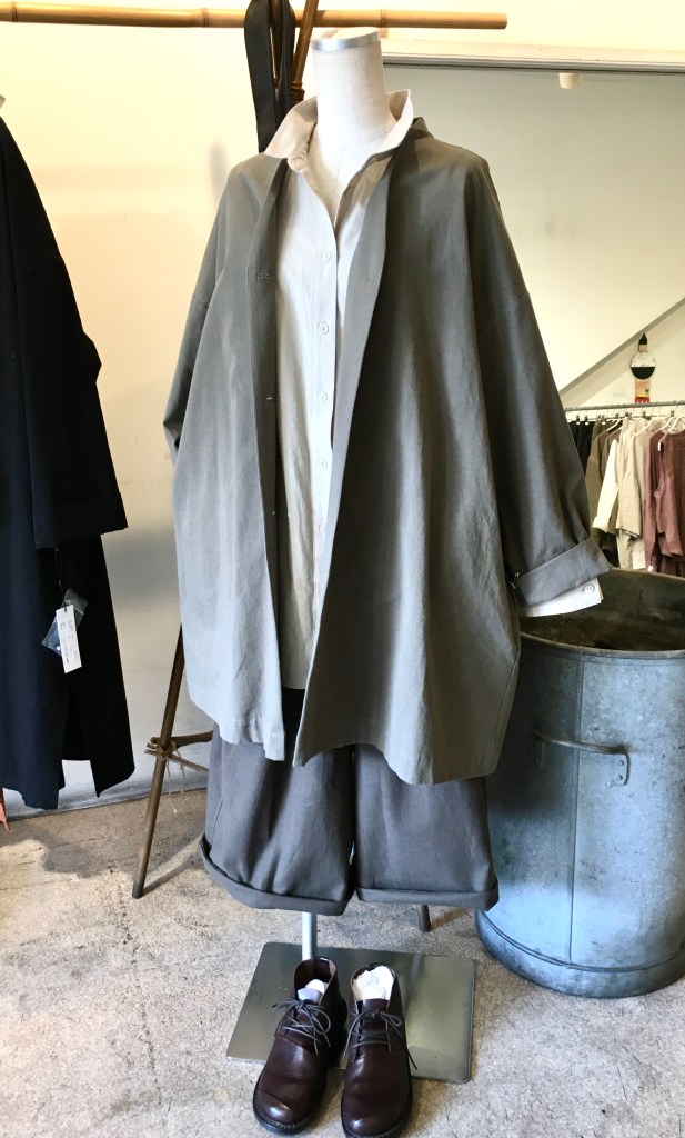 下の写真の様に、ボタンを数個だけ閉めて、中にシャツとスカートやパンツを合わせても、かっこよく決まりますよ!