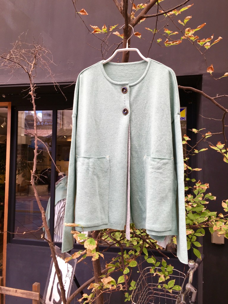 ミントグリーンのカーディガン