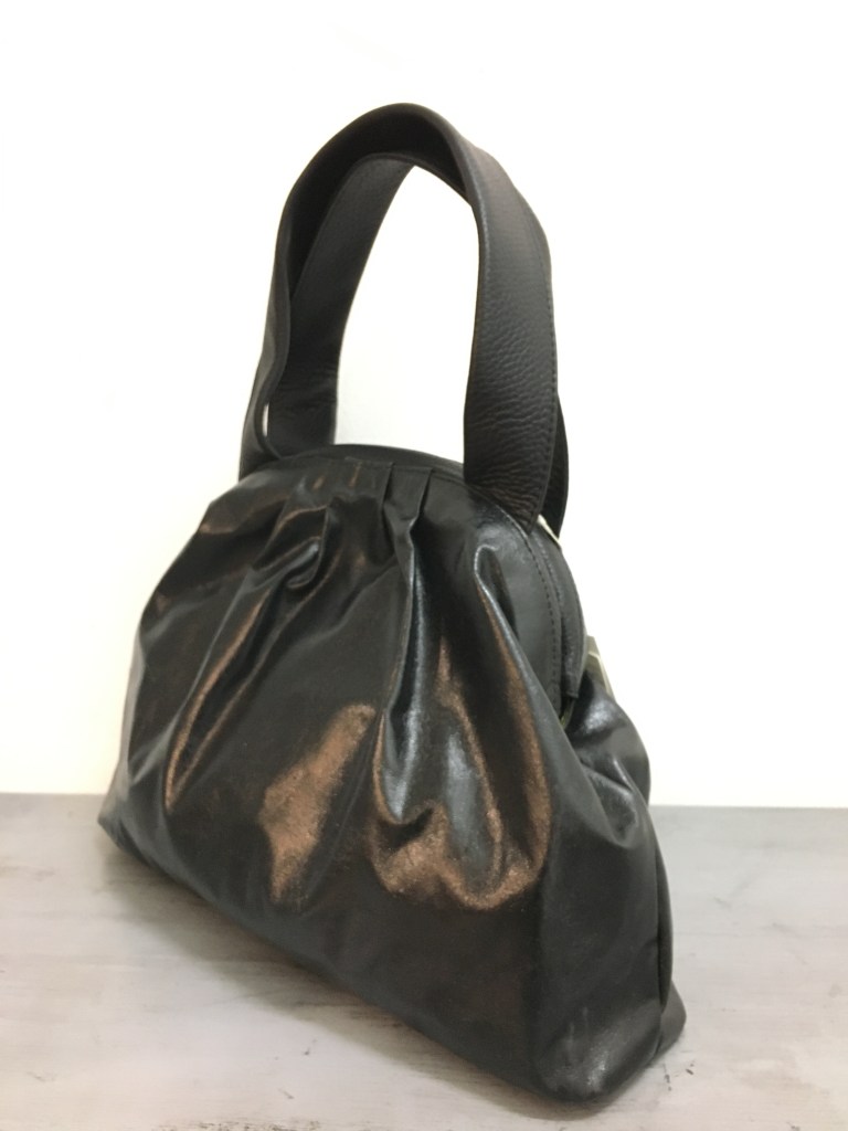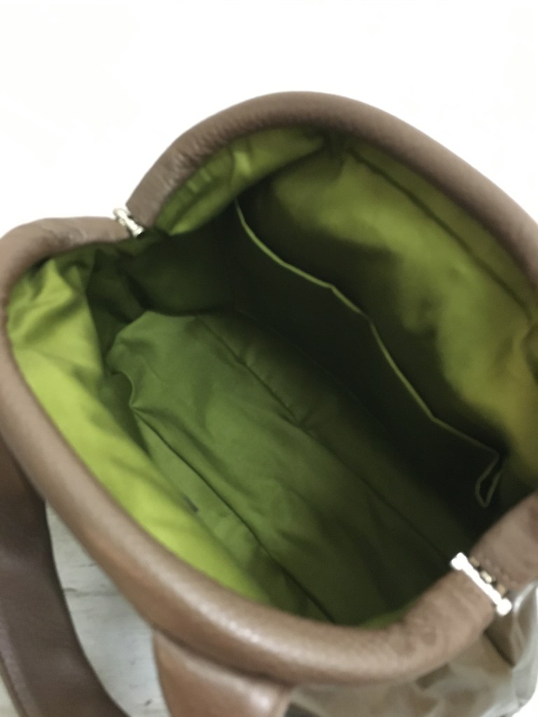 ショルダーは柔らかい生地感でサイドにもポケットがあり