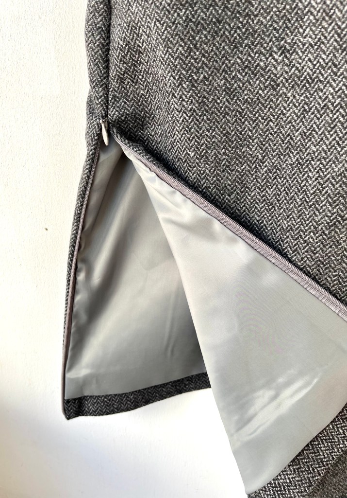 裾の両サイドにファスナーが付いていて、気分に合わせてスリットを作れるという