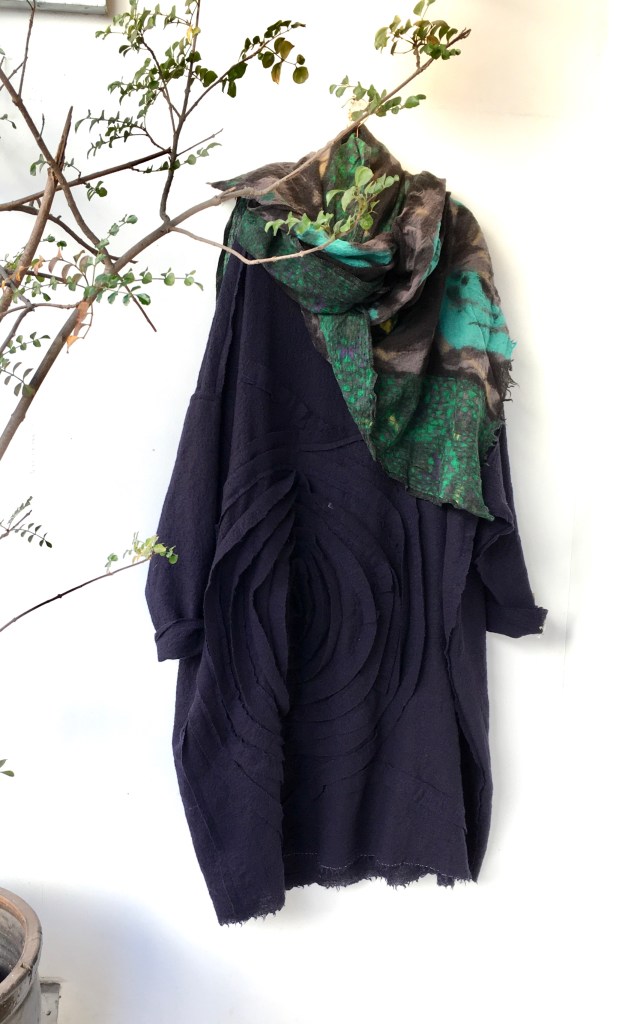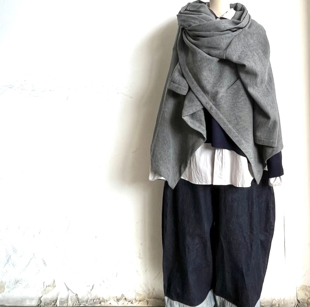 黒の綿のコート風のロングJKの下に着てみました。