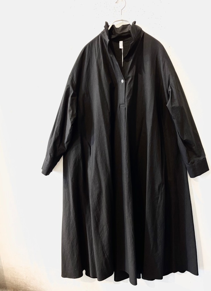 春物なのに黒ですが、萌のワンピース。丈もあり、カッコいいです。サイズ感もよく、