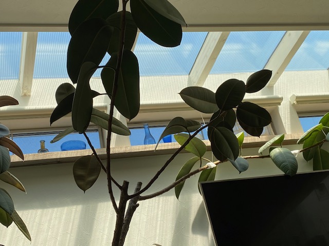 家の中はジャックと豆の木ならぬ空まで届けのゴムの木、1年に30センチずつはのびる。