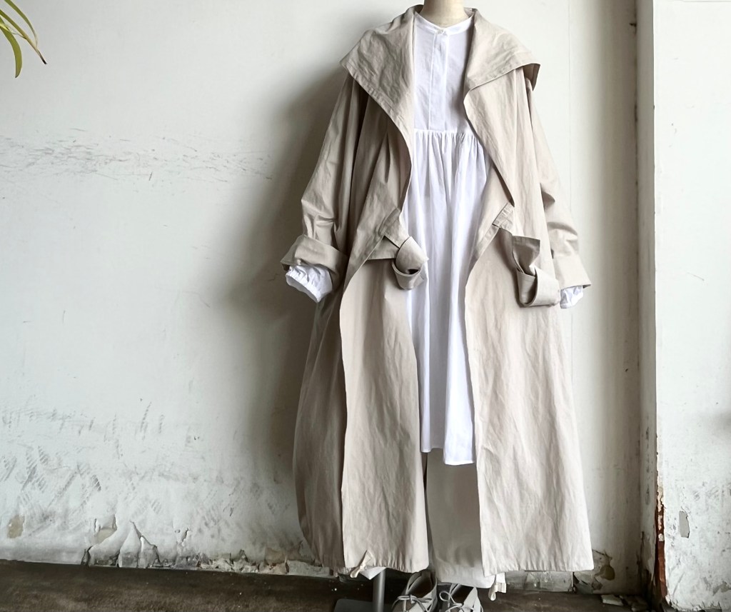 カッコいいです。前を全部とめてワンピースで着ても。