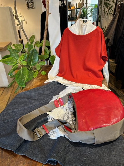 そして、まだまだ冬物SALE、赤のベスト半額ですよ。MIYACOの春物デニムスカートと。