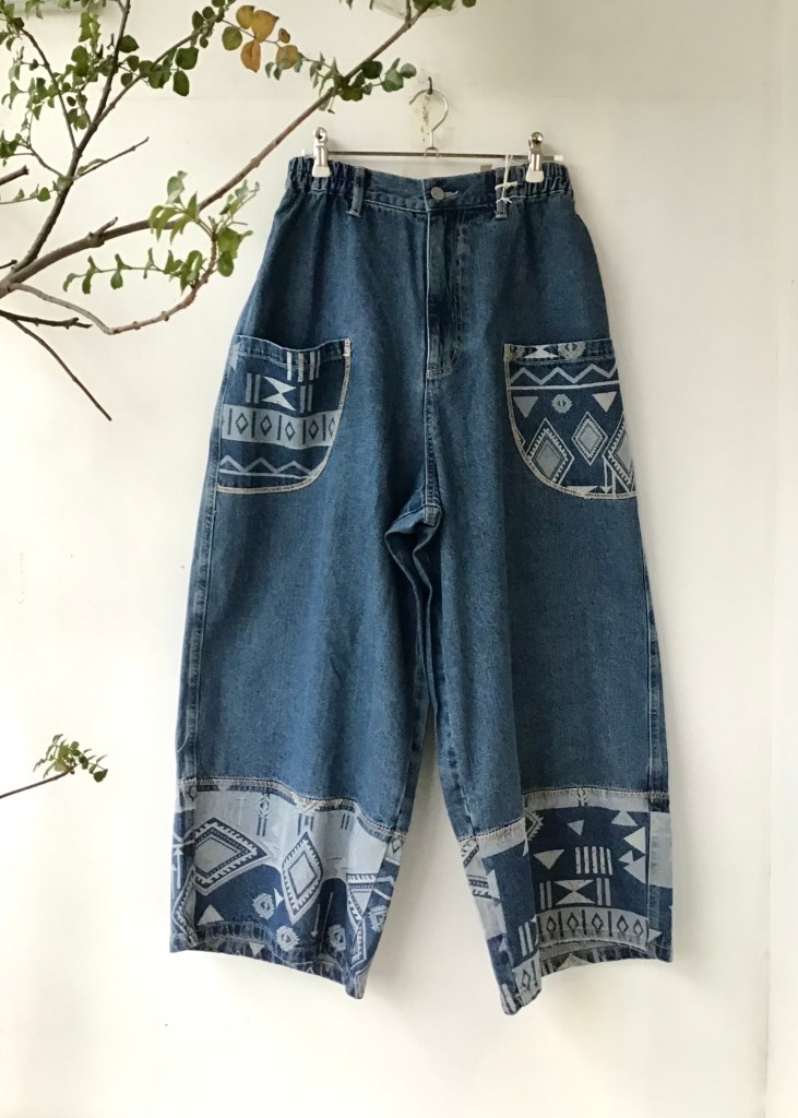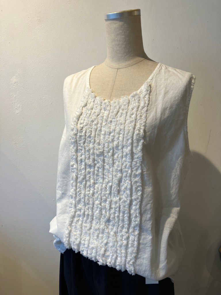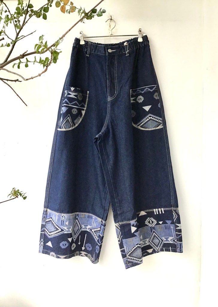 インターにフリンジブラウスの白色とデニム色