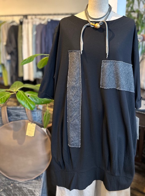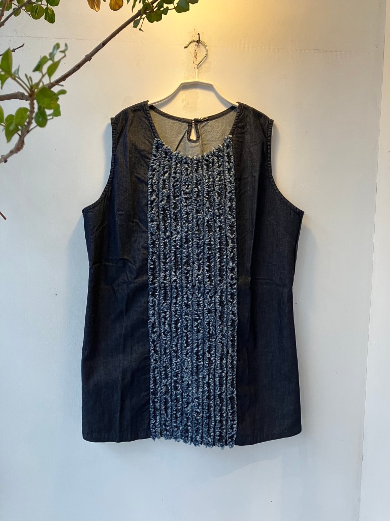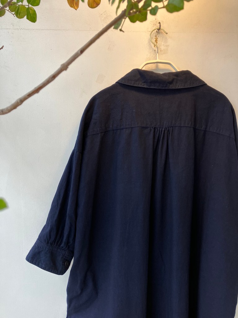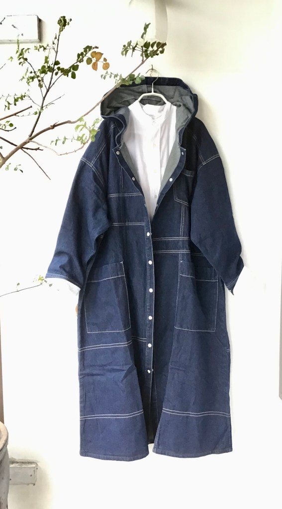 デニール綿のブラウス。腰も隠れてカッコイイ長さです。
