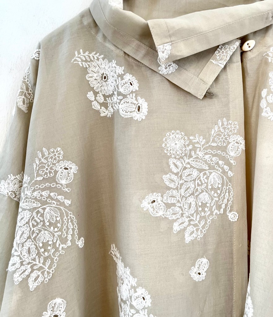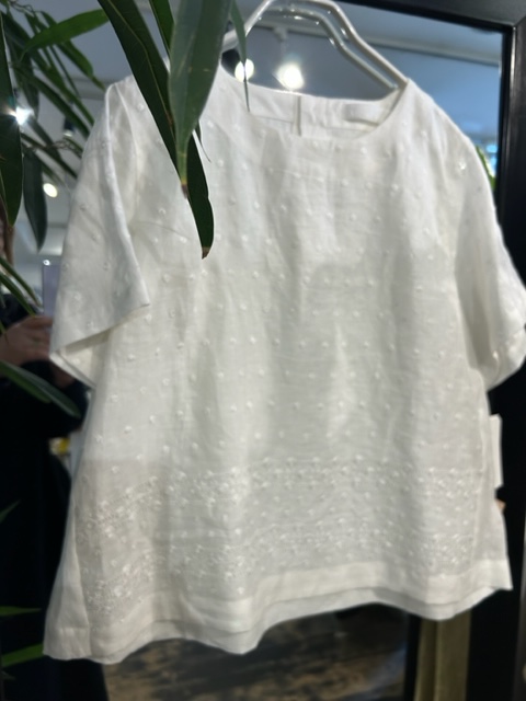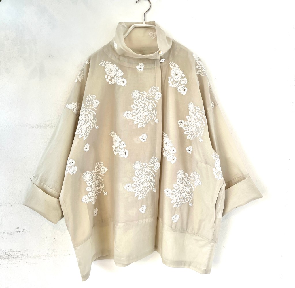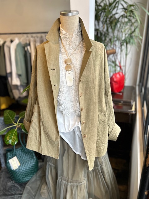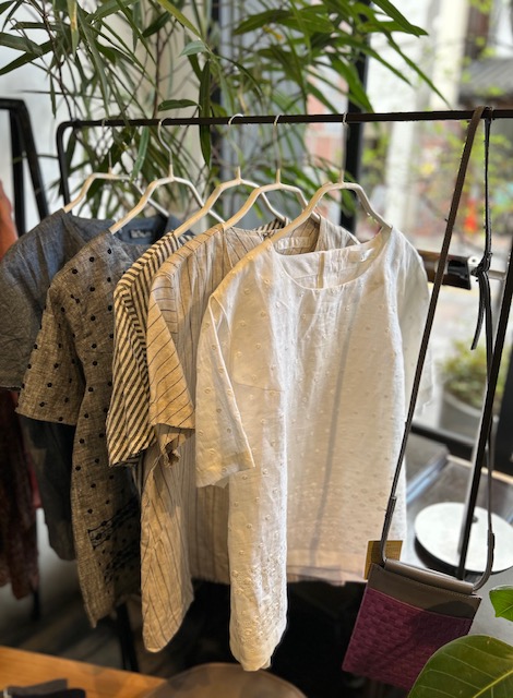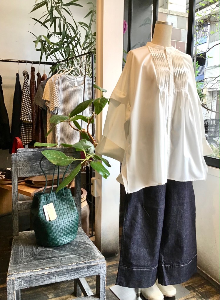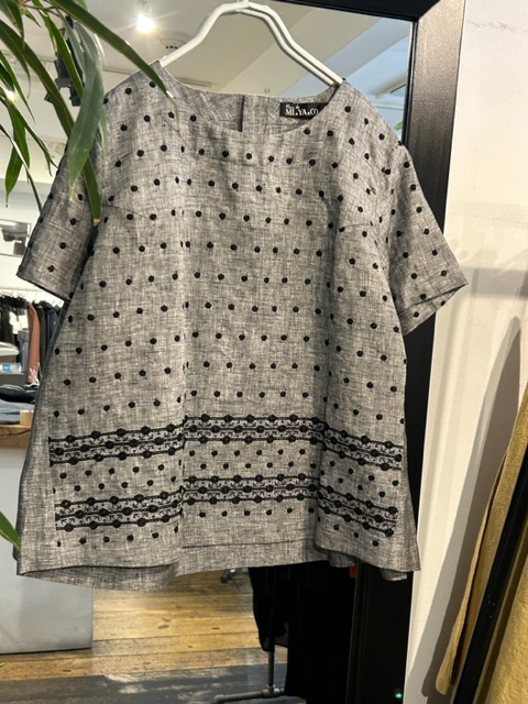 MIYACO夏の綿や麻のブラウス達が入荷。スカートやワイドなパンツにも合うちょうどいい丈です。