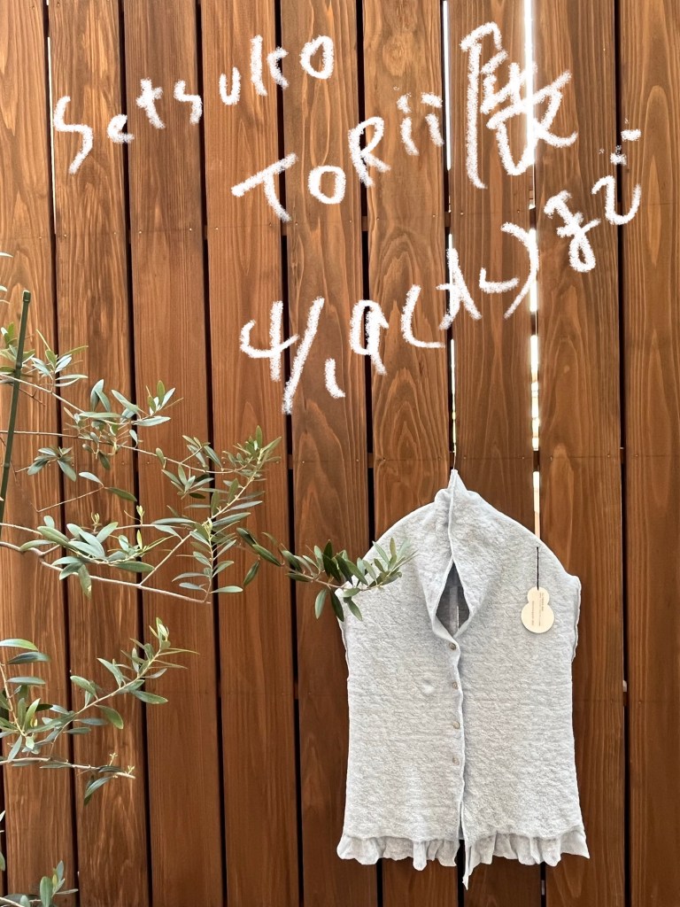陽 4月 16, 2023 ~ atelierbyou Setsuko Torii展 4月19日(水)まで 羽織やベストなど素敵なものあります。 ブラウスやワンピースにちょっと羽織りたい時に便利ですよ。