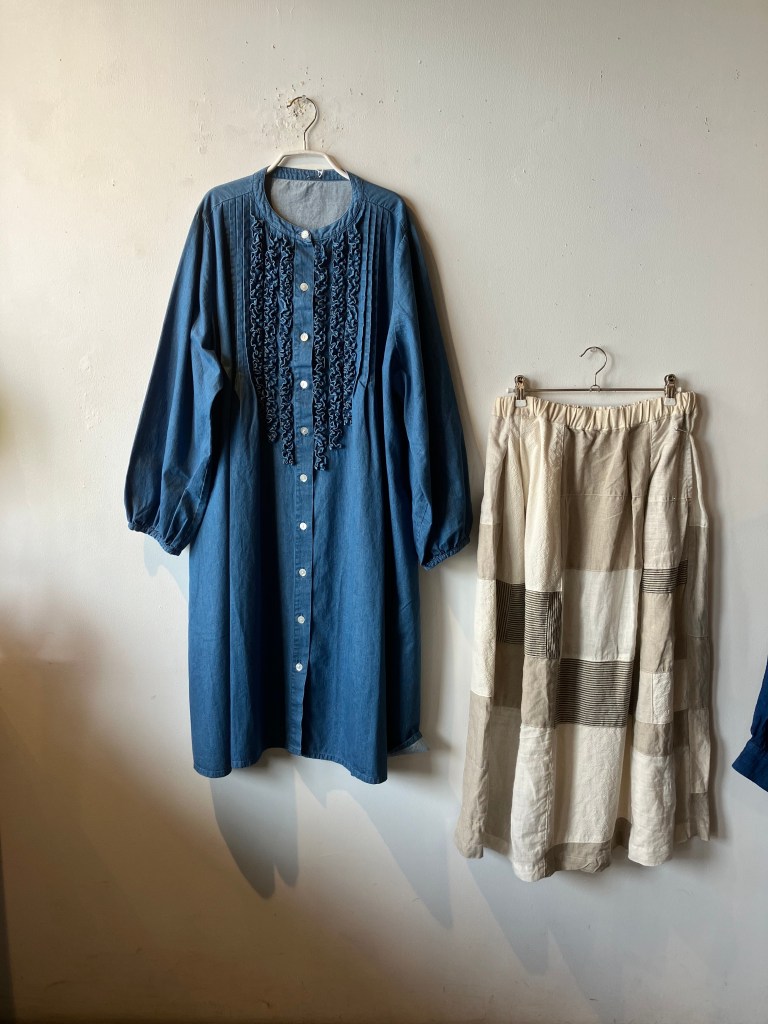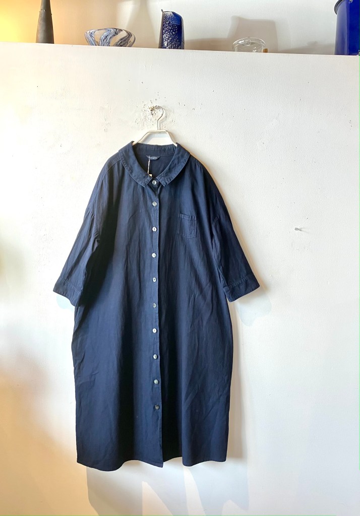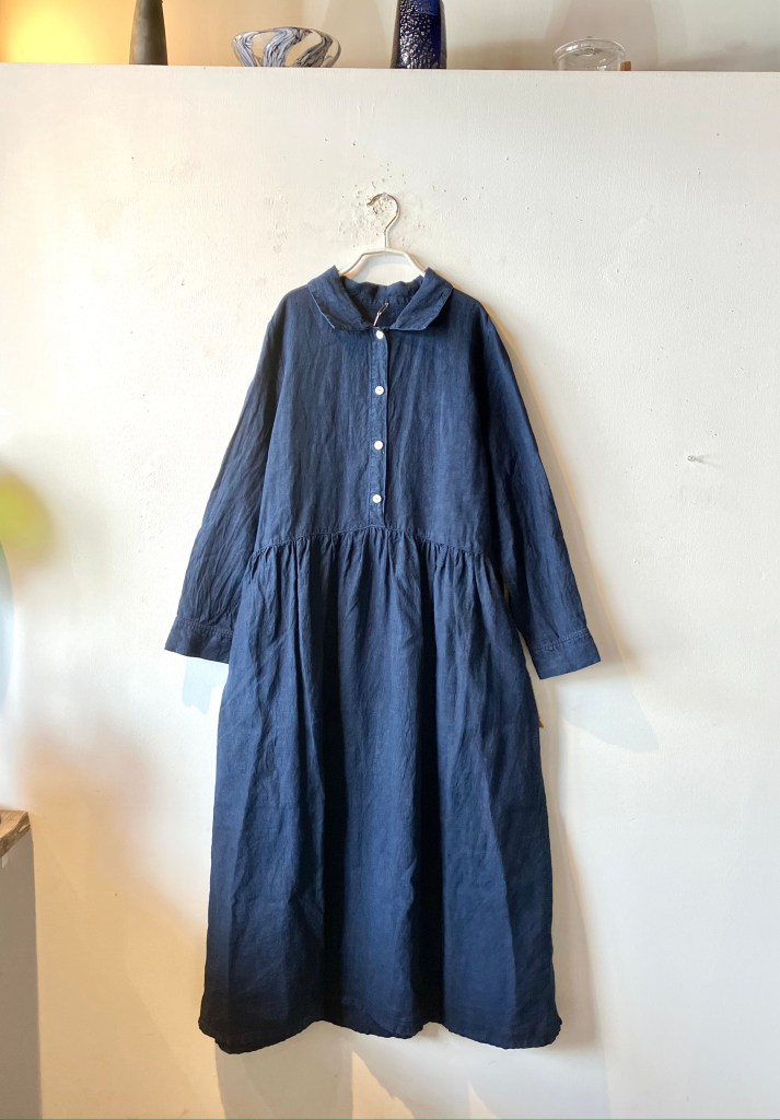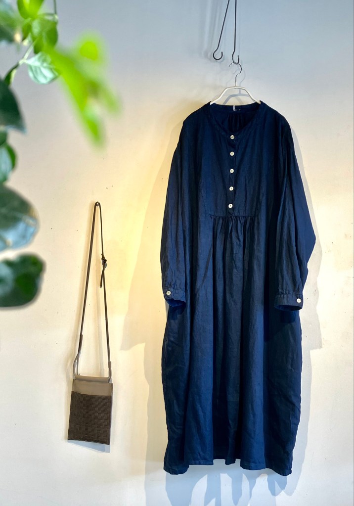 今日の青ao 4/22 4月 22, 2023 ~ atelierbyou 高城染工、入荷しました! 今年の新作、スタンドカラーワンピース、丈の長さもあり、前身のギャザーがアクセントに・・ 藍染・白・インディゴ