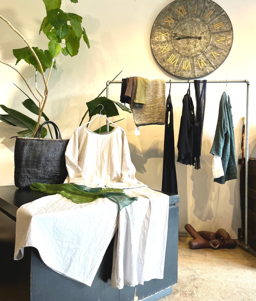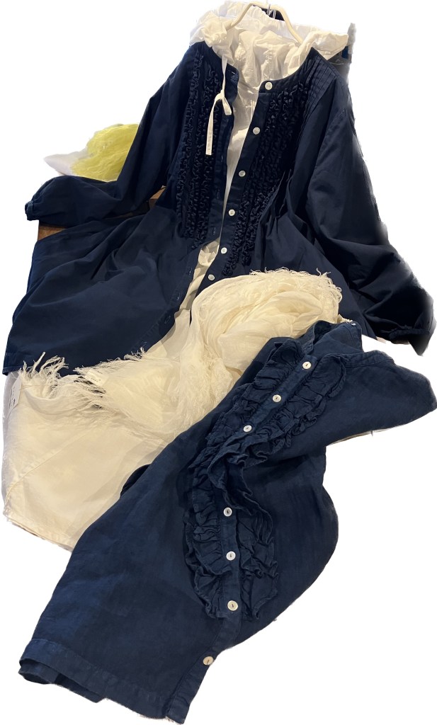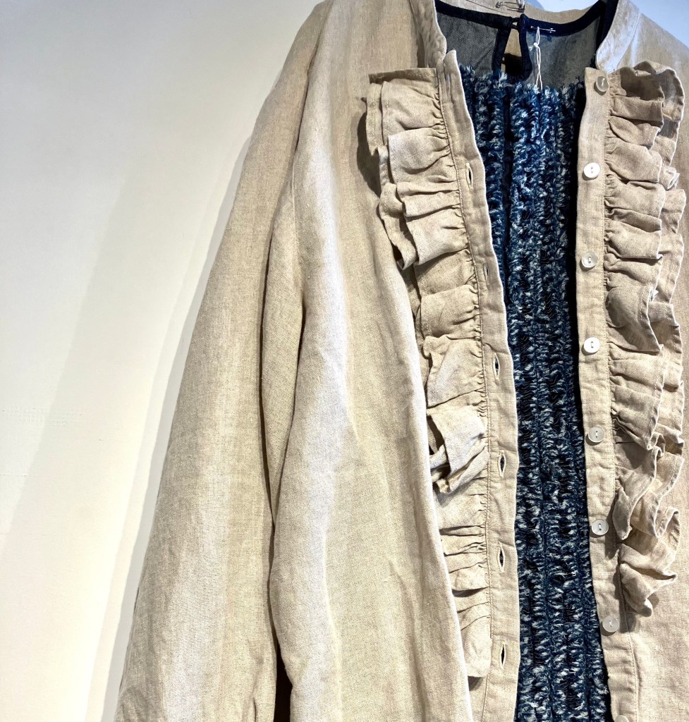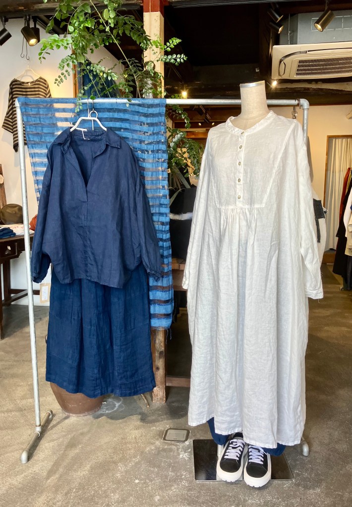 今日の青ao 4/22 4月 22, 2023 ~ atelierbyou 高城染工、入荷しました! 今年の新作、スタンドカラーワンピース、丈の長さもあり、前身のギャザーがアクセントに・・ 藍染・白・インディゴ