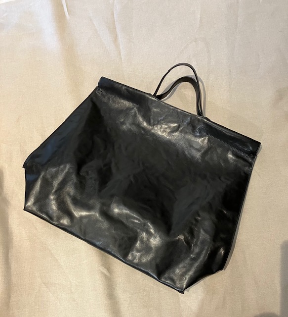 黒のバック★ 光沢があって少し大きめな素敵な品質の良いレザーバックです