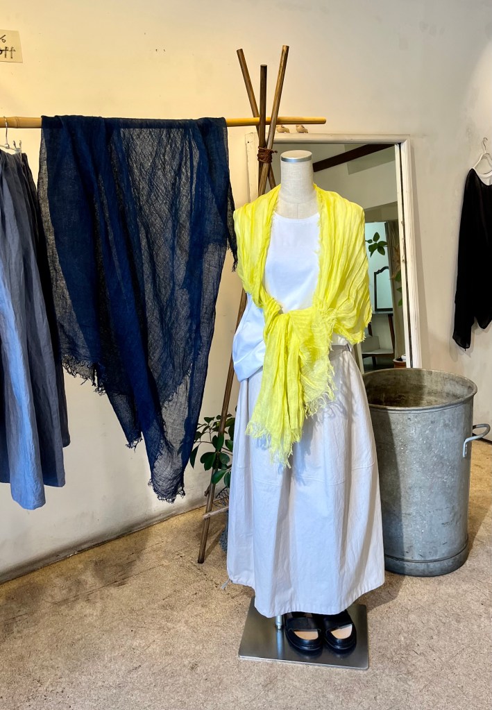 差し色にイエローのストールをしてみました