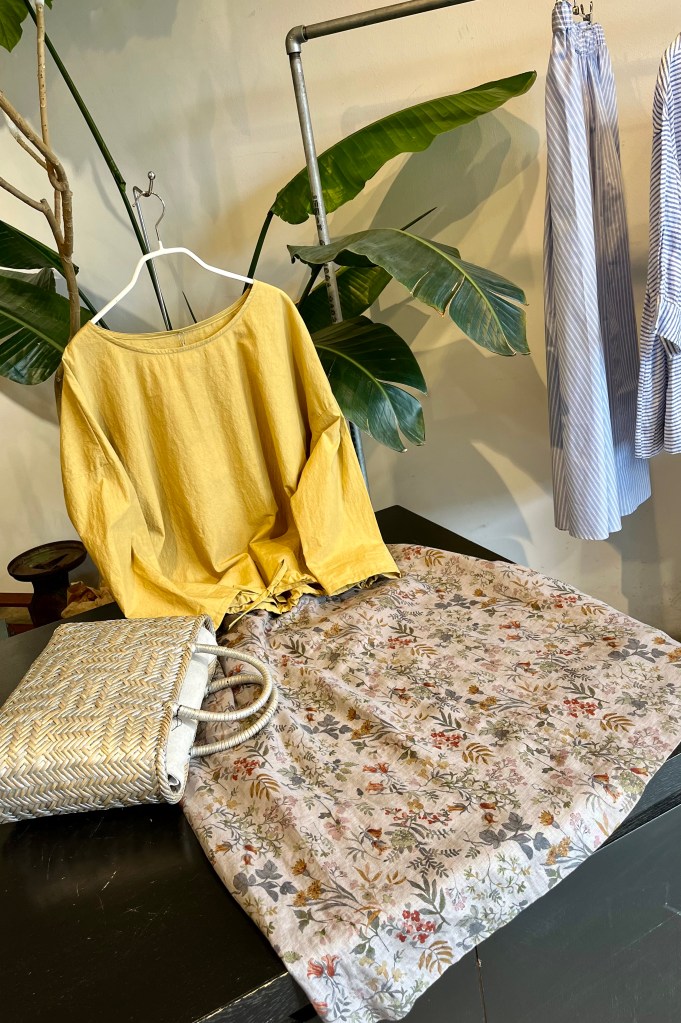 お疲れさまです〜 陽です 8月 1, 20238月 3, 2023 ~ atelierbyou リネン100%の涼しいワンピ〜ス クラージュのアンティークなプリント柄 目の覚める綺麗な エメラルドグリーン