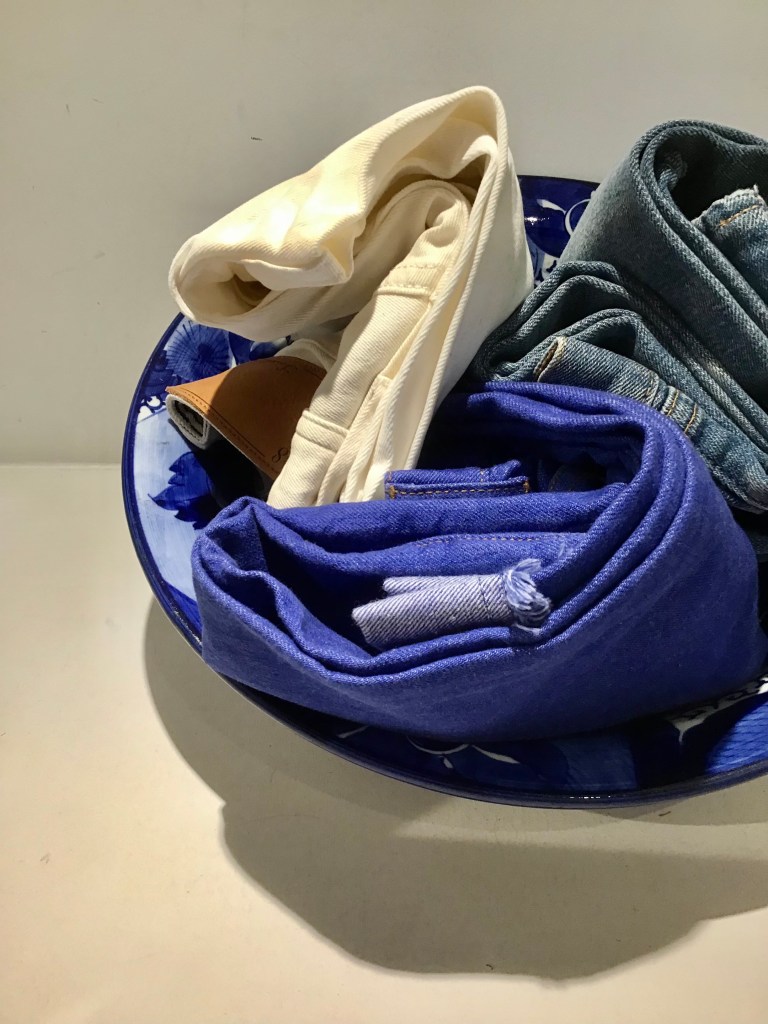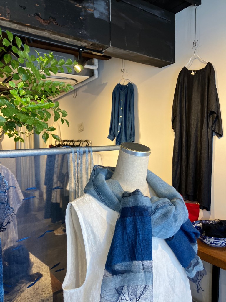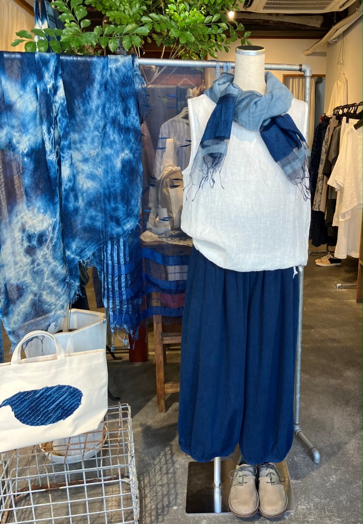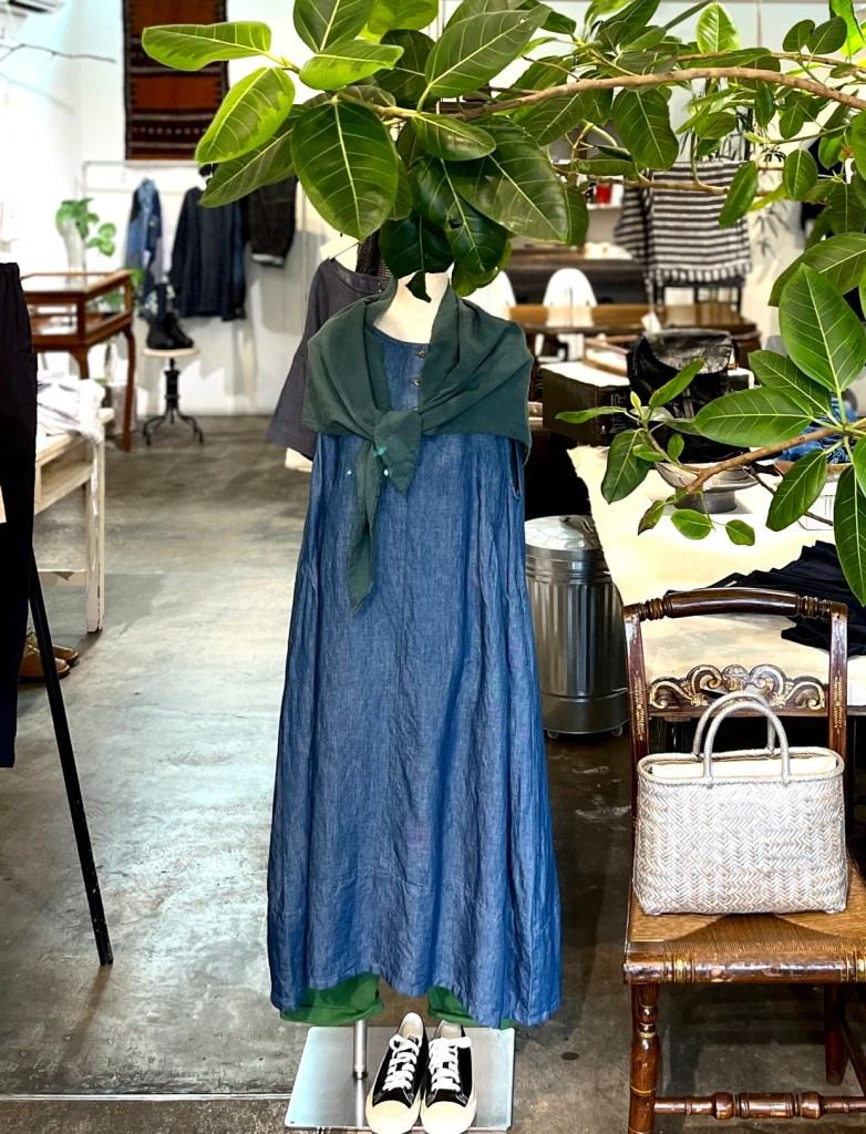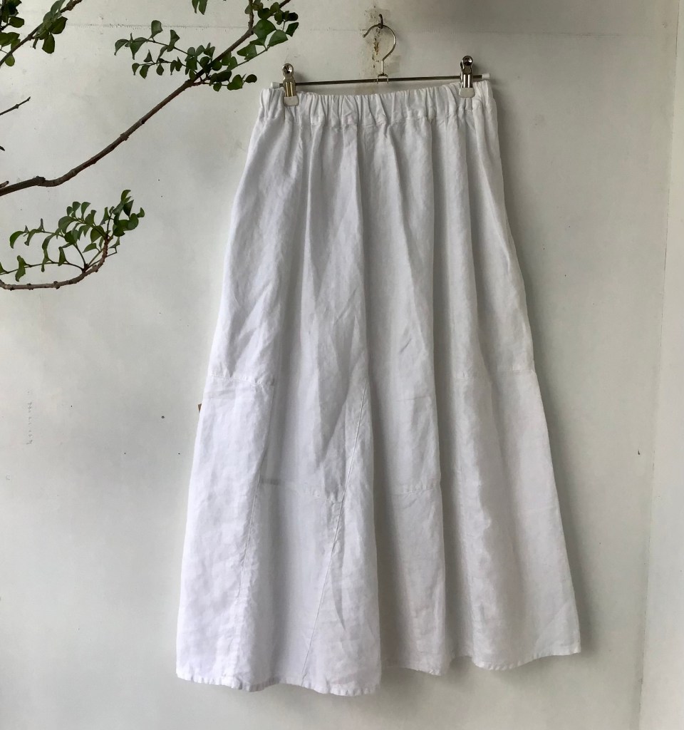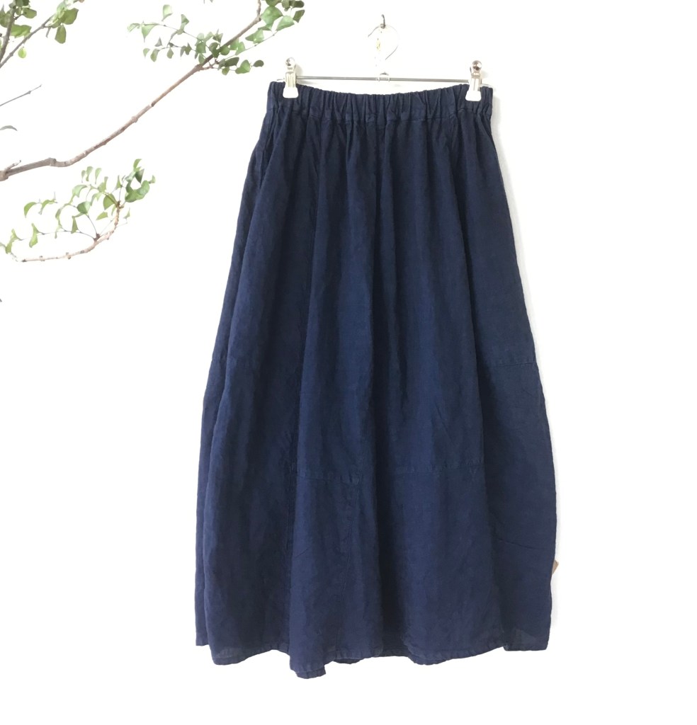 リネンパッチスカート ・白/藍染