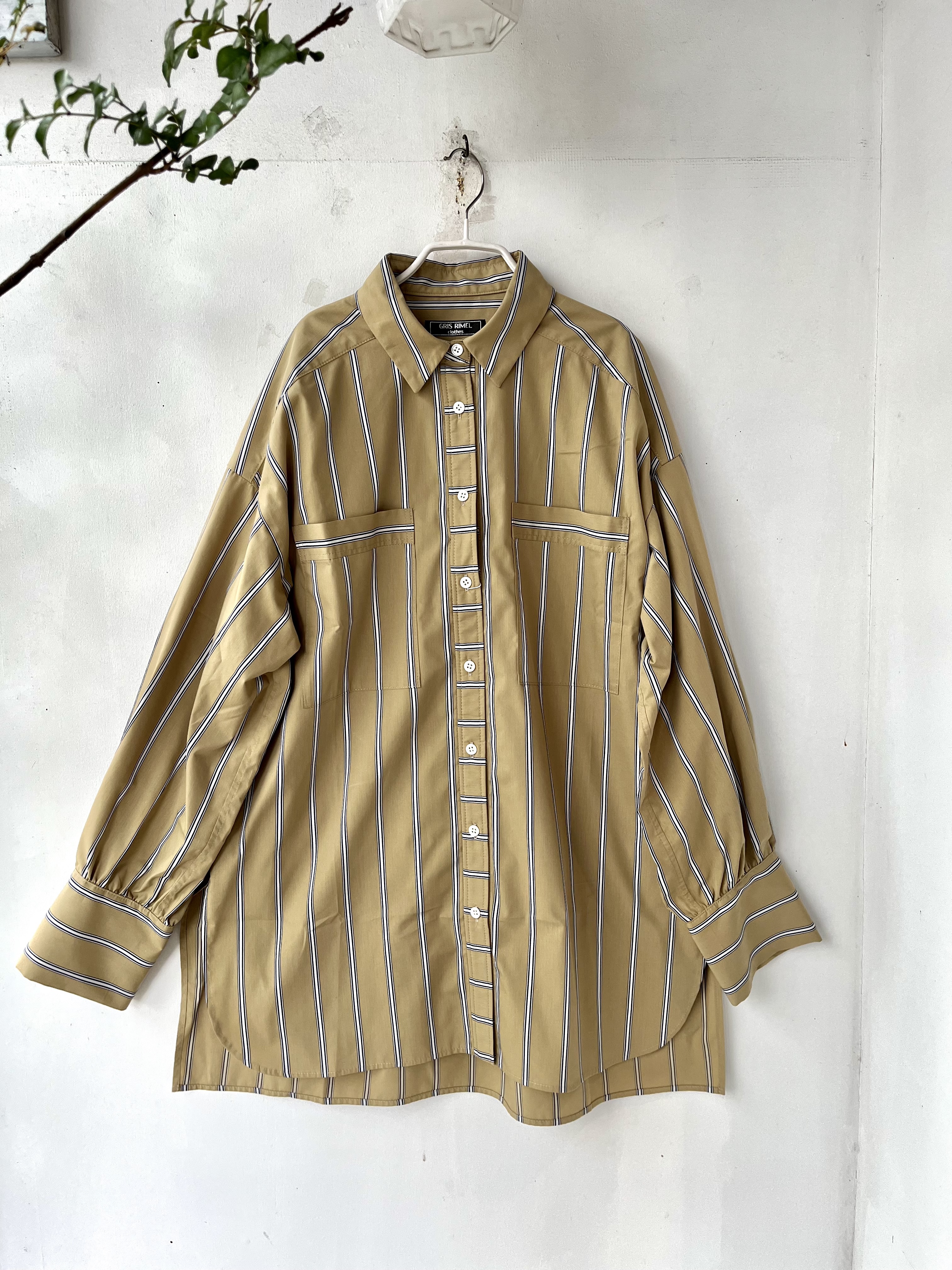 Wポケットストライプオーバーシャツ
