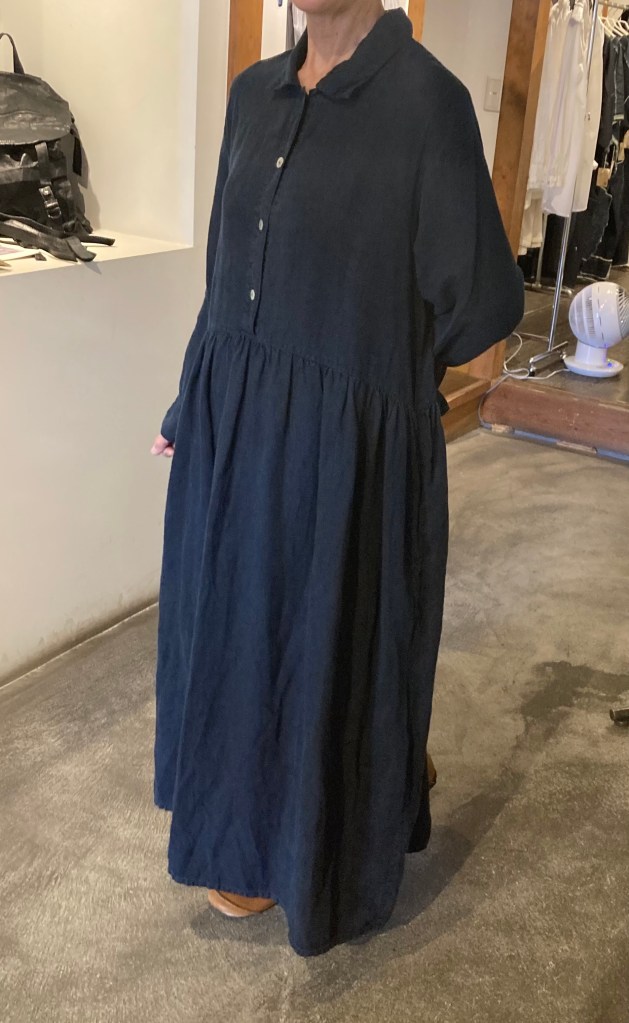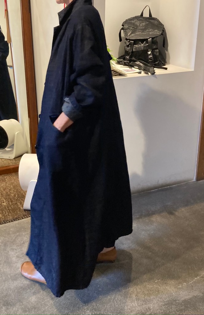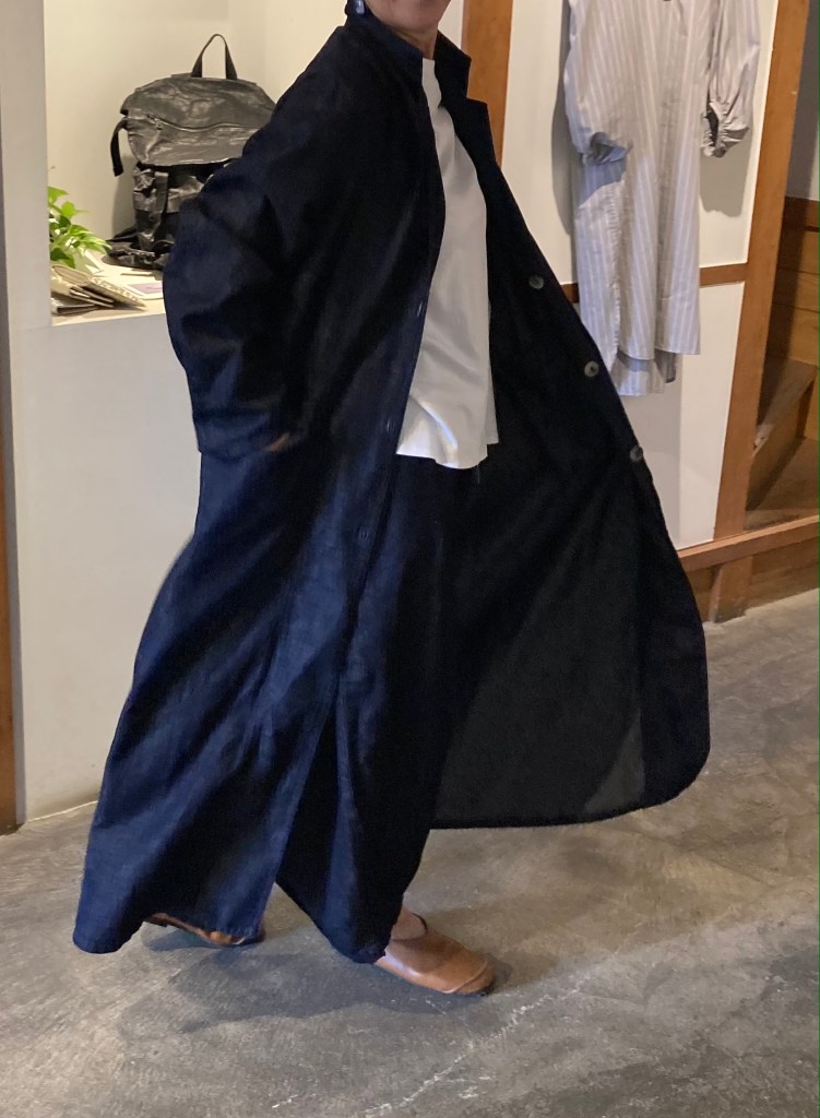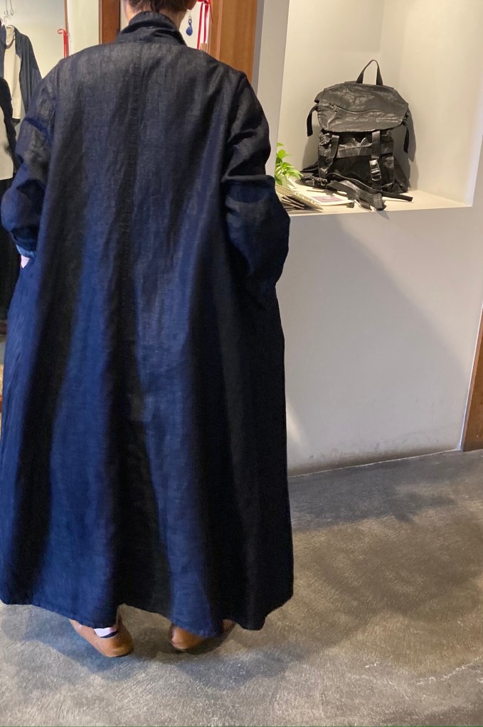 濃紺の藍染のワンピースとコート