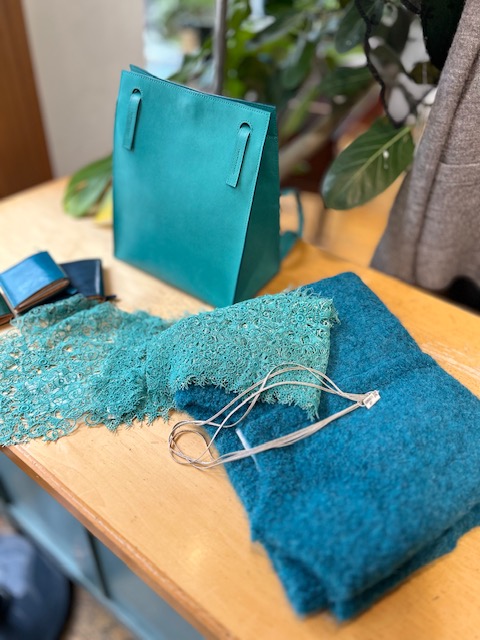 同じくブルーシリーズで。黒やグレーの多くなる季節、こんなきれいな小物で