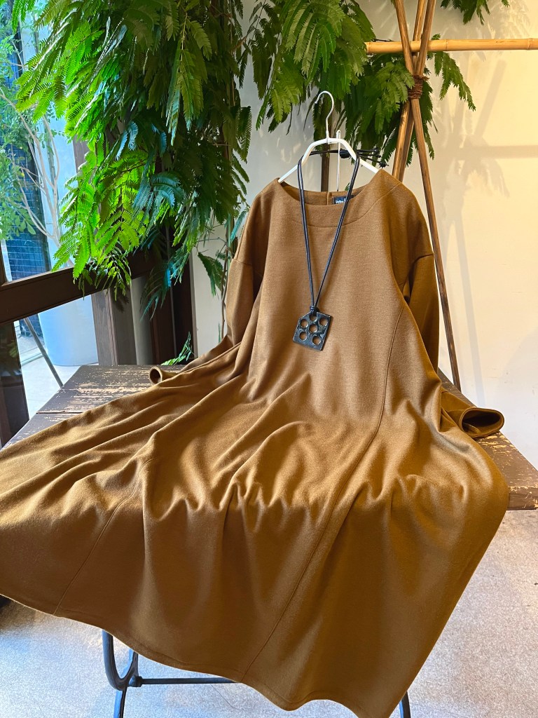 コクーン系の形のワンピース