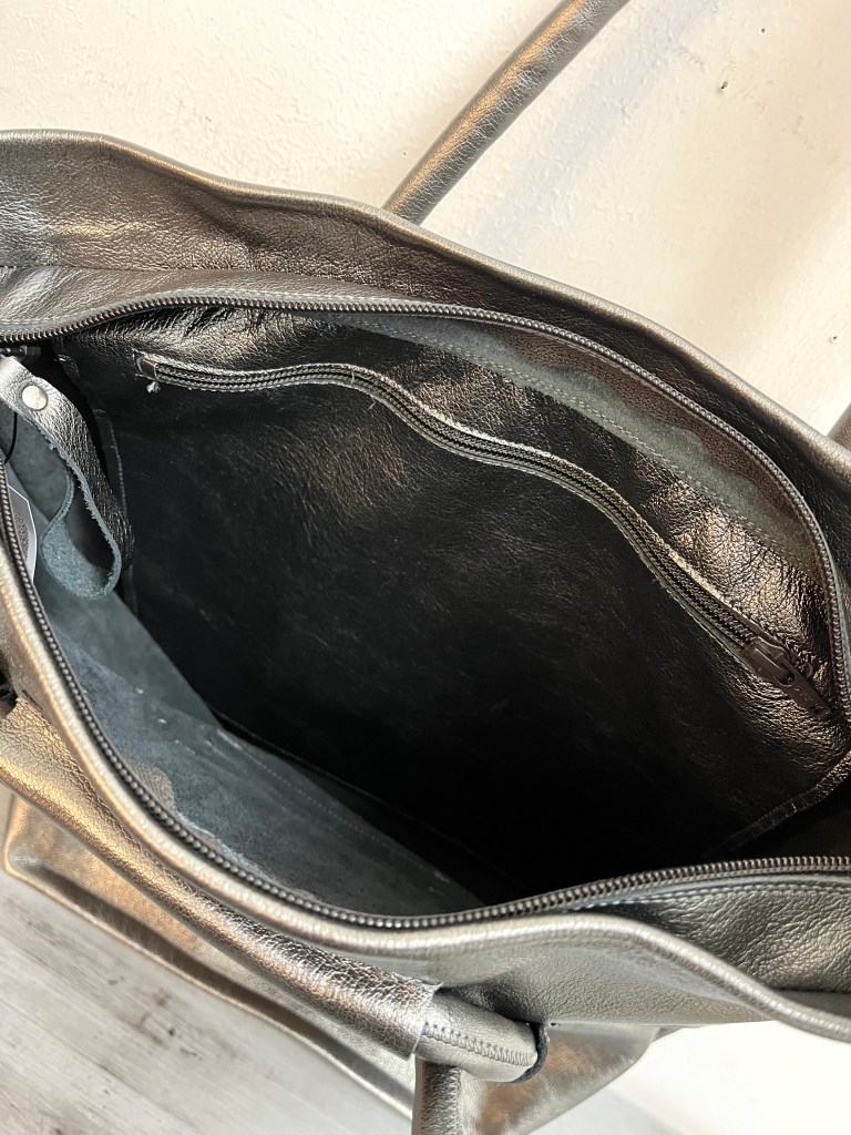 メタリックカラーがお洒落♪ 肩掛けもできて大容量なので荷物が多い方にもぴったりですよ