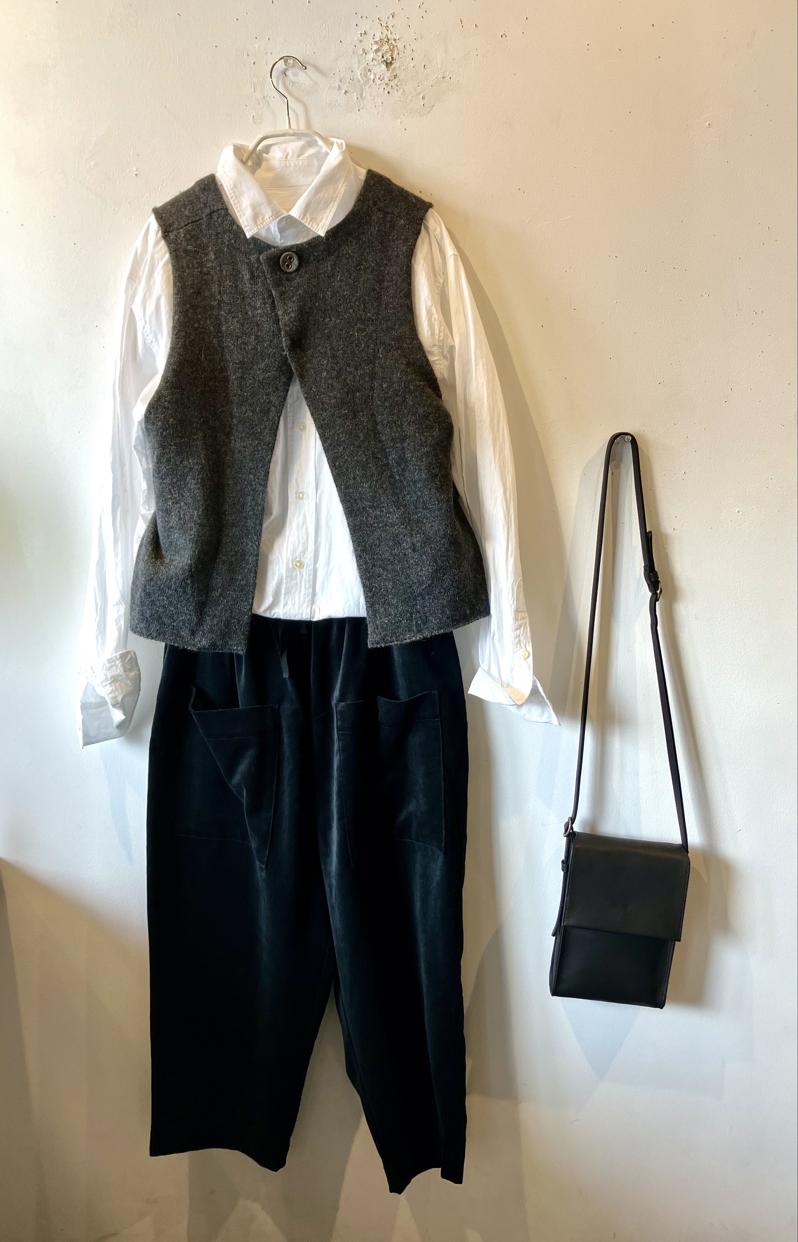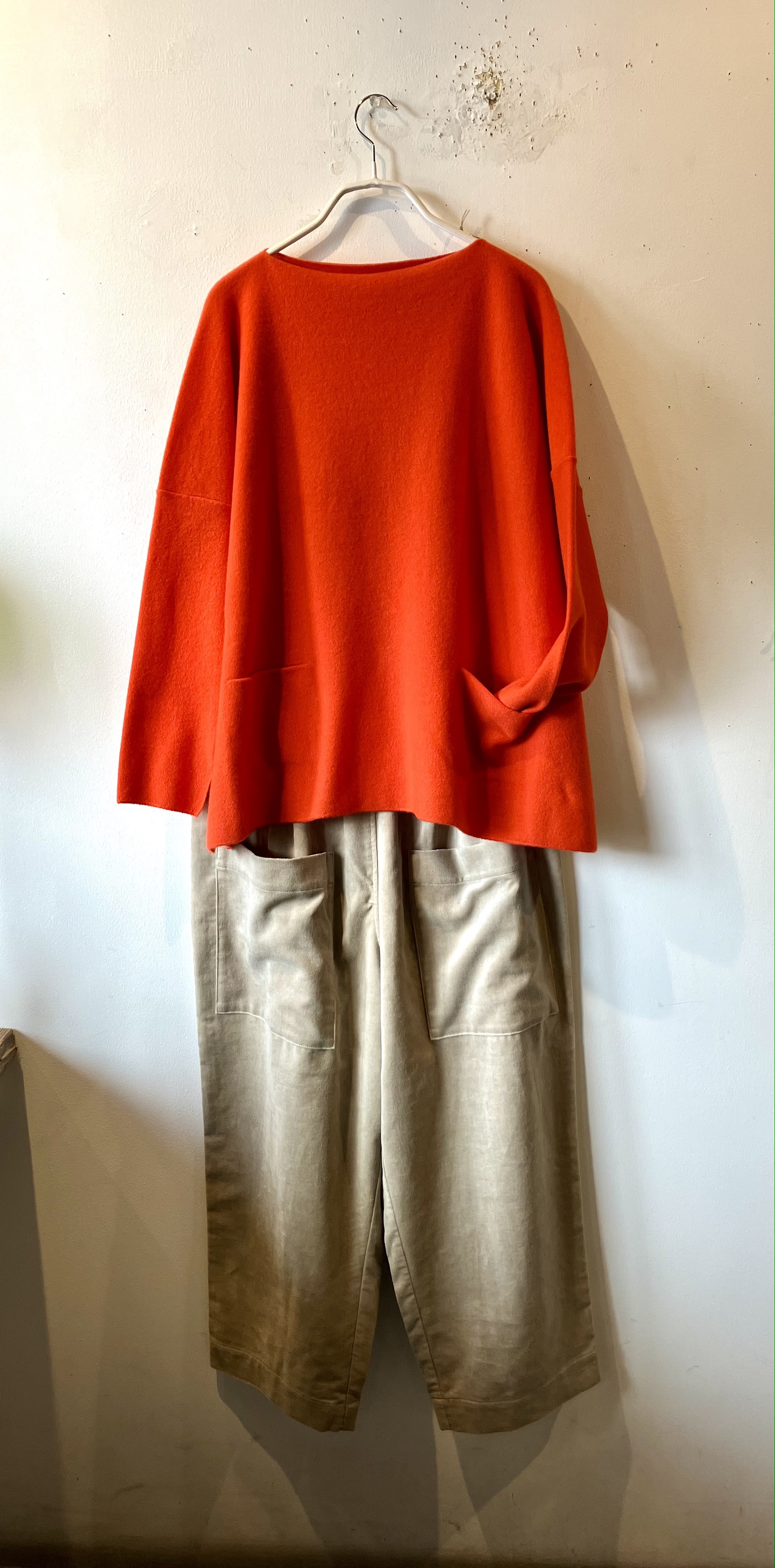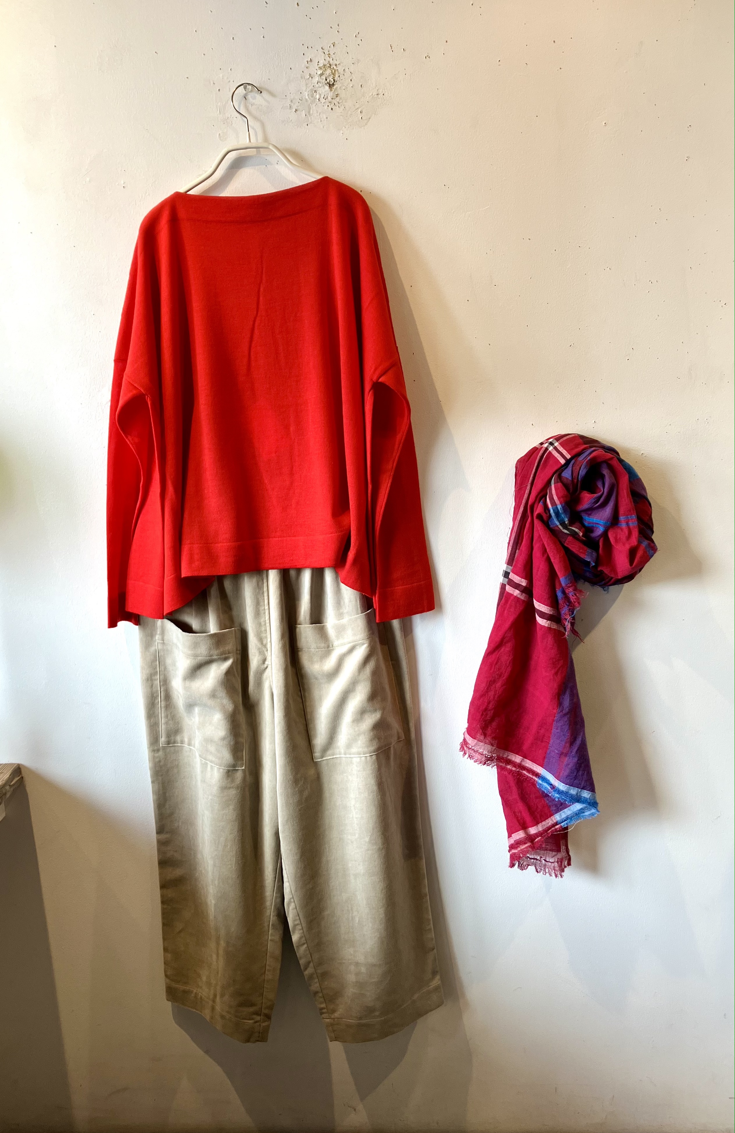 綺麗な色のセーター、ベスト、パンツとこれから先も色々着回しできます。