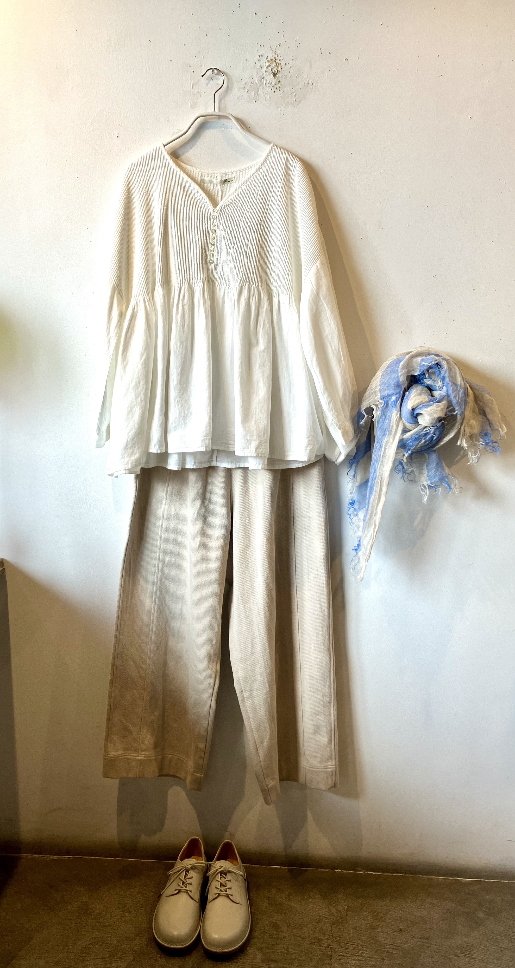 ホワイトコーデが暖かい陽射しに溶け込んで〜