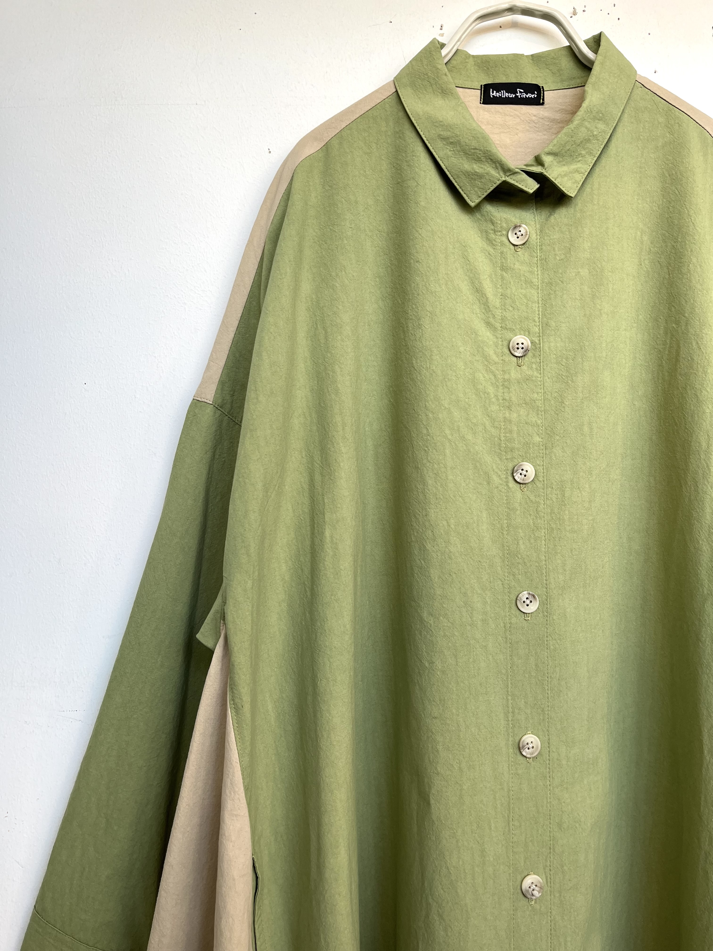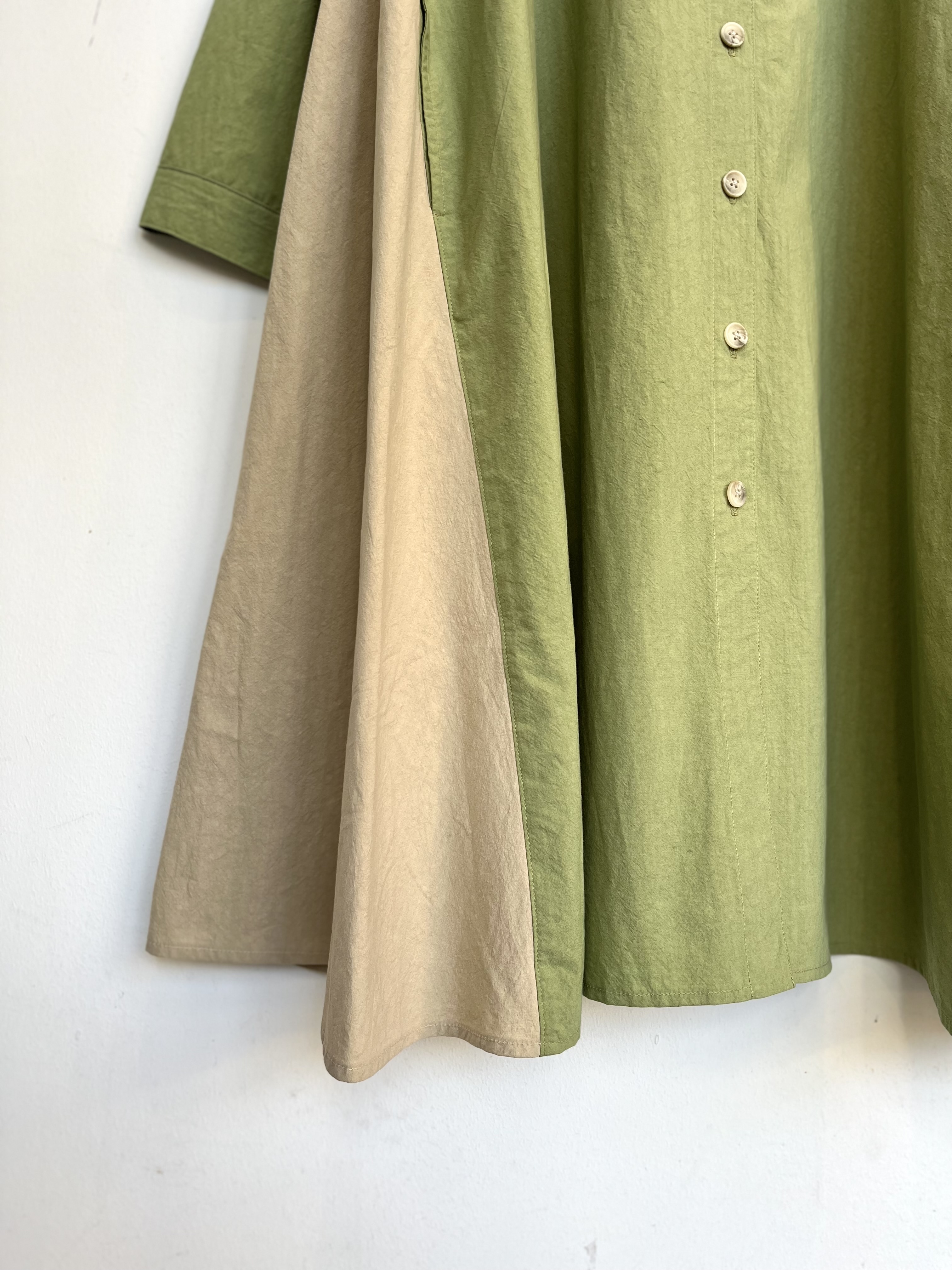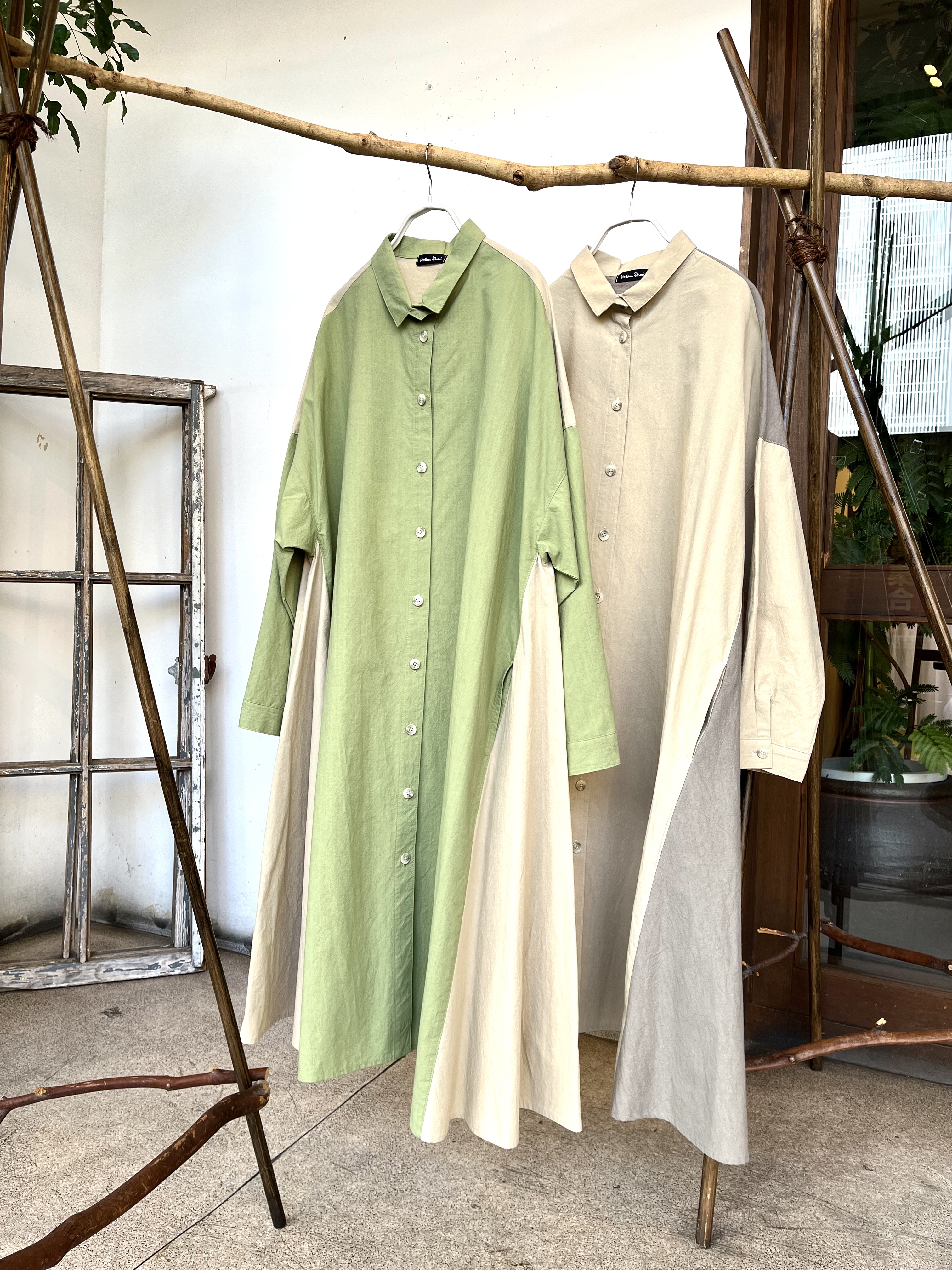 春らしいお色のシャツワンピースは羽織りにも便利です