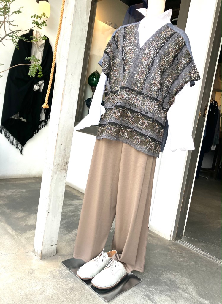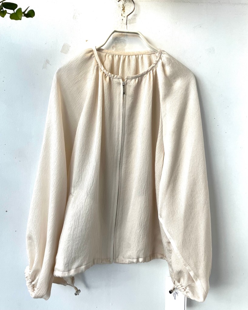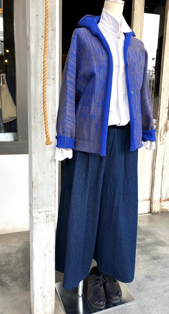 ブラウス感覚できたり、羽織ったり着回しがきいて便利な一枚です。