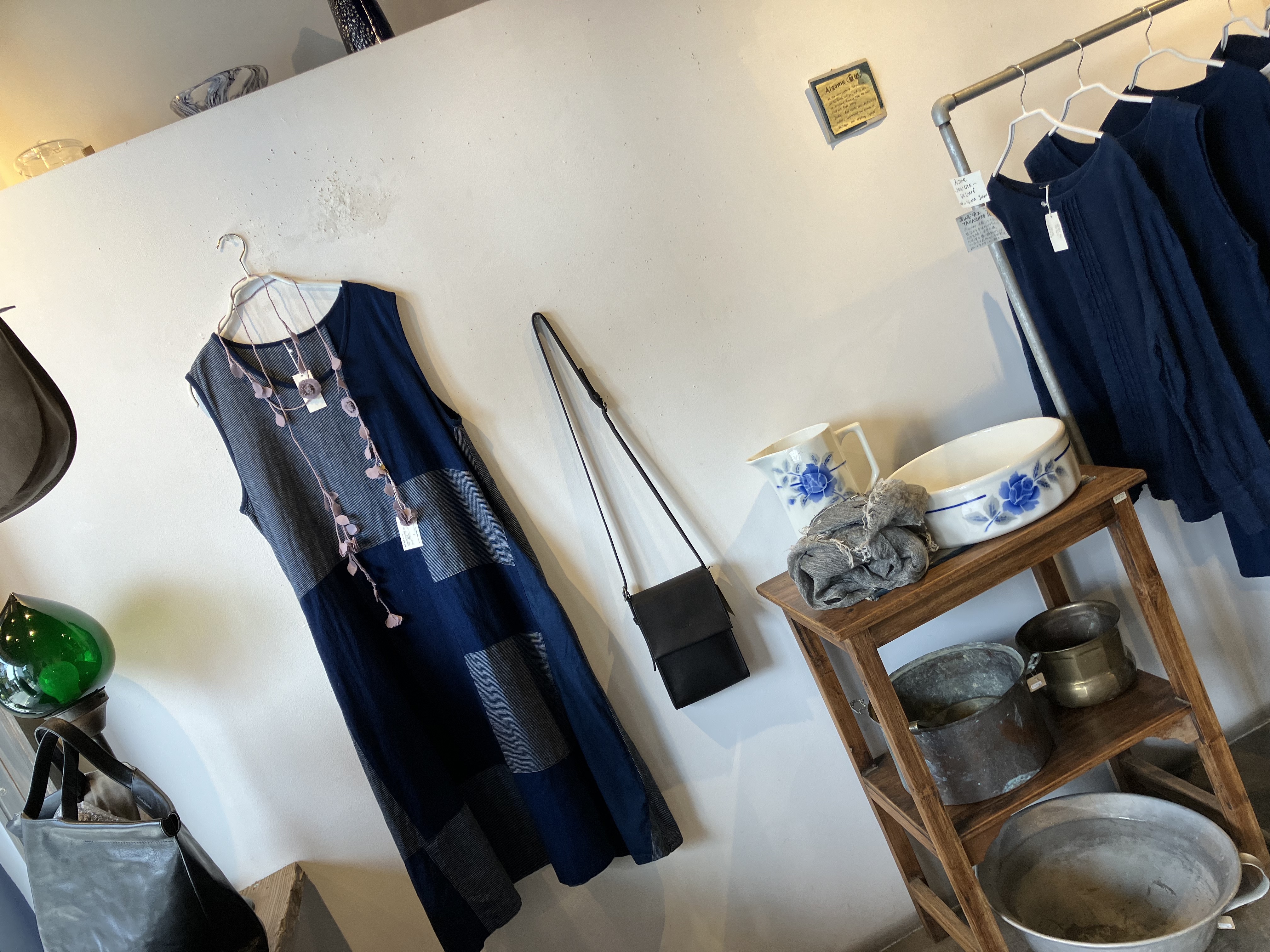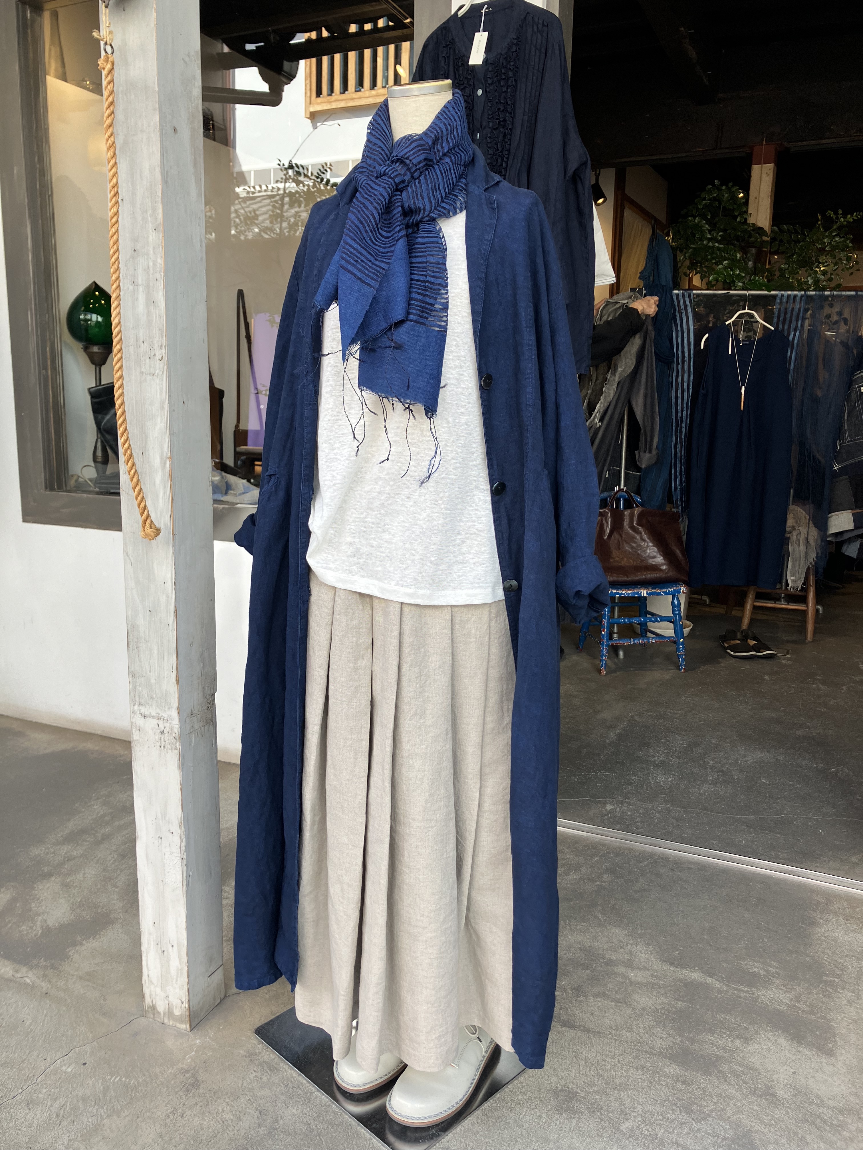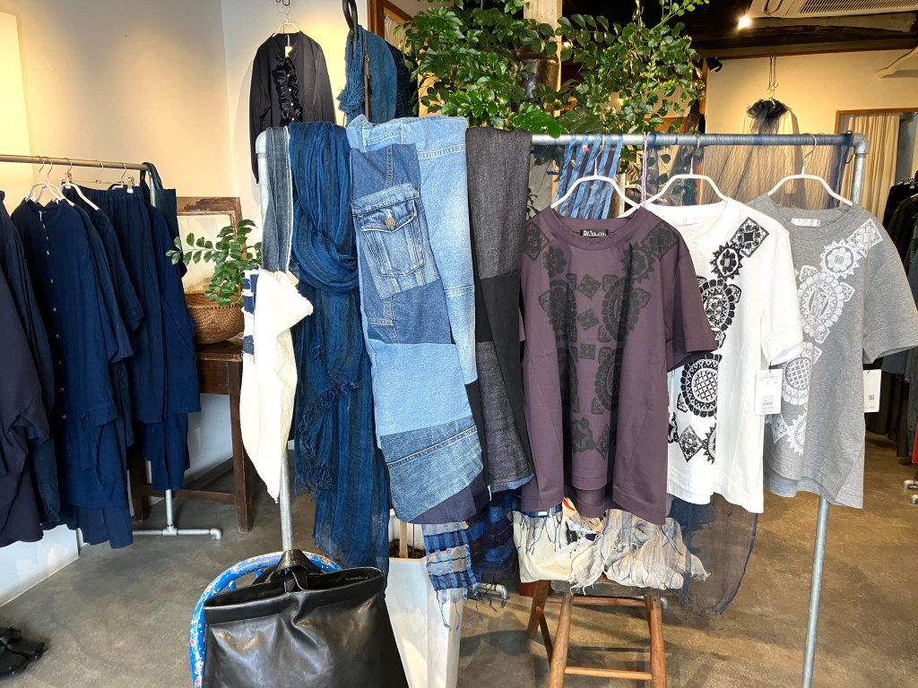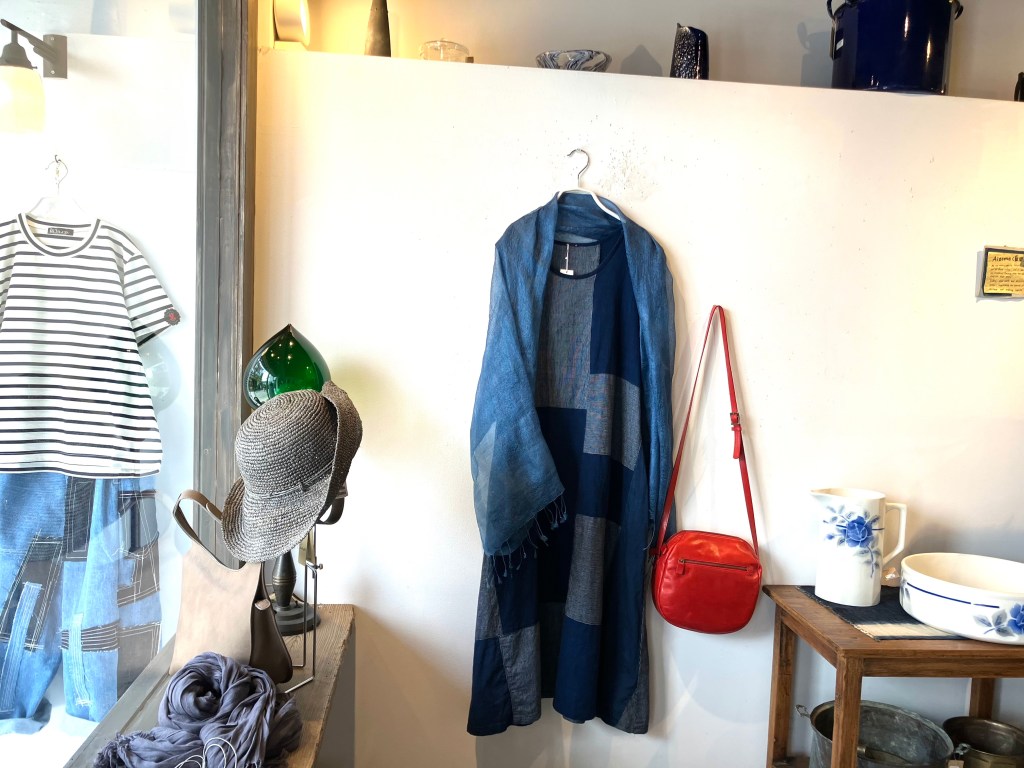 青aoの店内は藍染、リネン、コットン素材のお洋服揃ってますよ