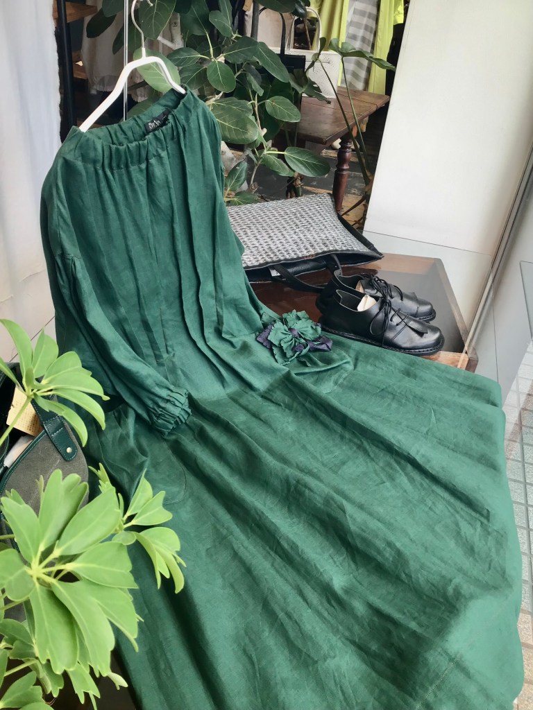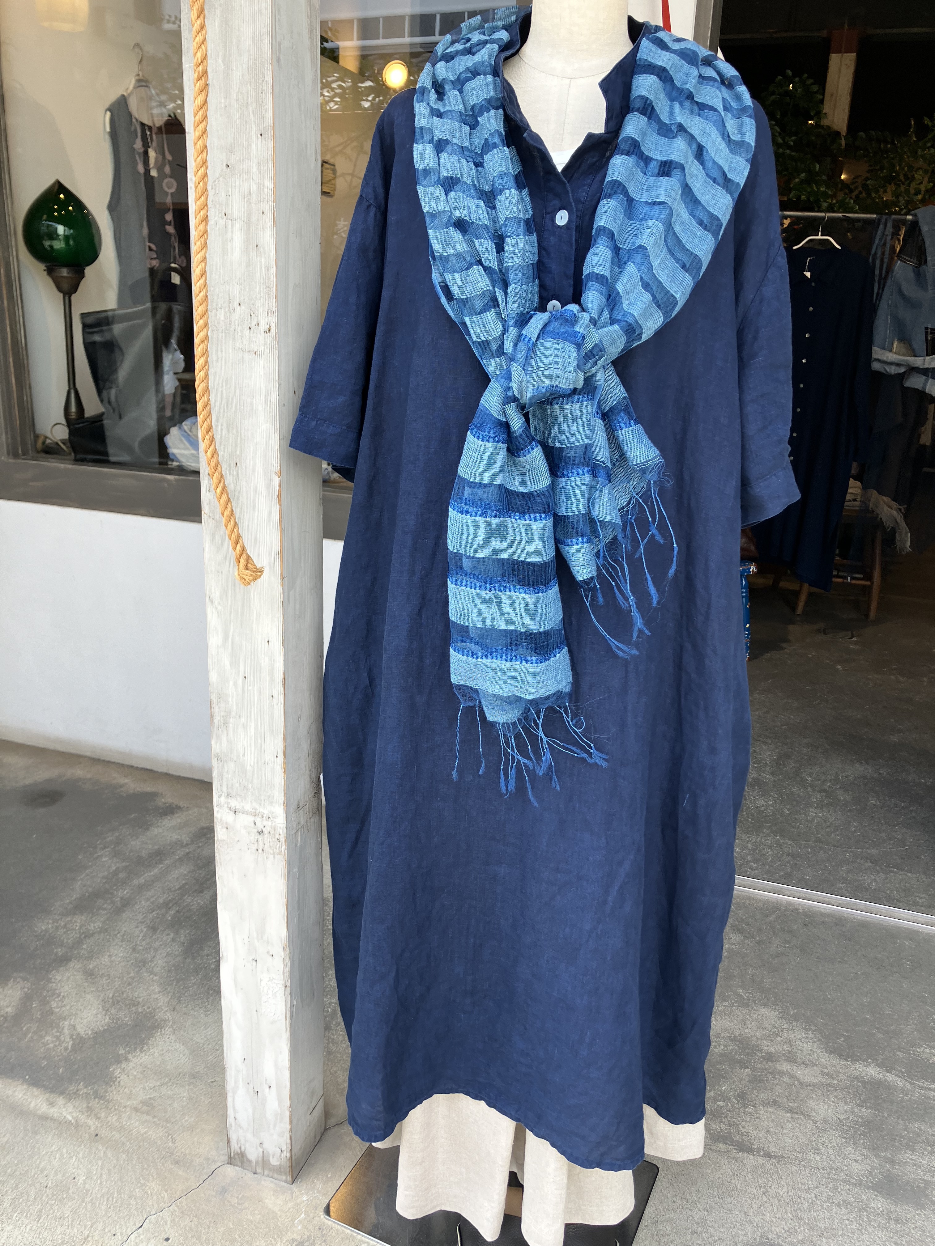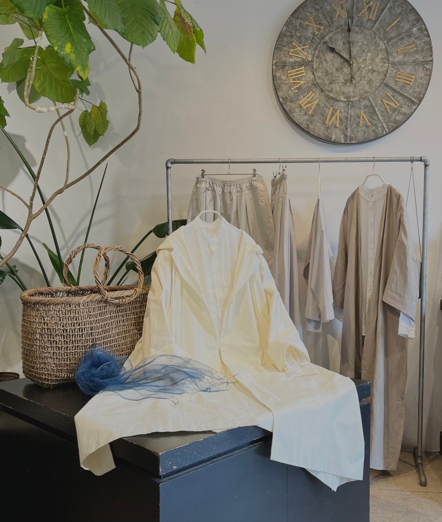 青aoの店内は藍染、リネン、コットン素材のお洋服揃ってますよ