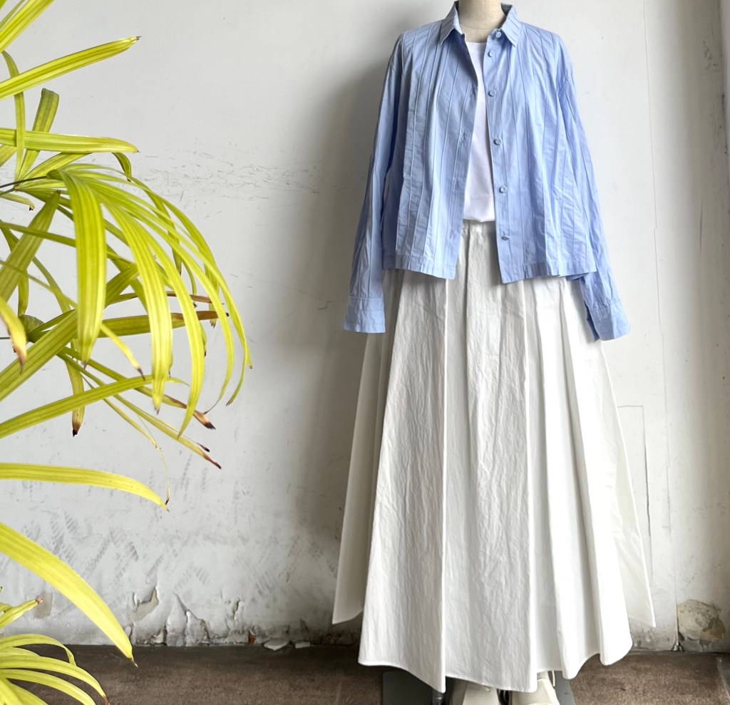 白いTシャツ、ブラウス、ワンピース おすすめです。