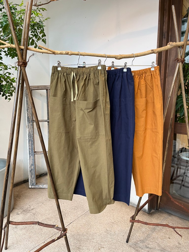 しぼのあるような涼しい生地のパンツ
