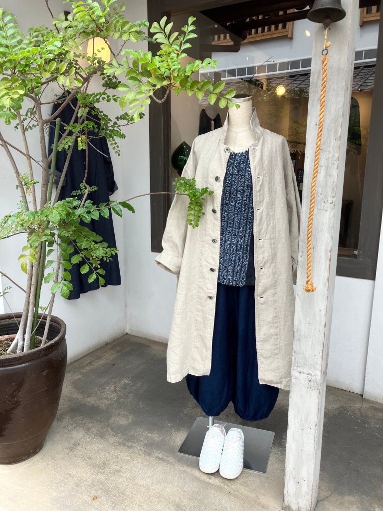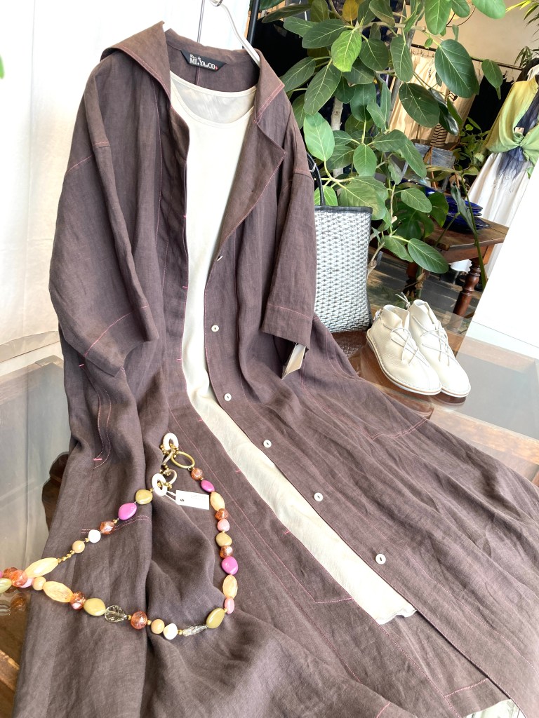 陽オリジナル 麻ミディアム丈のコート