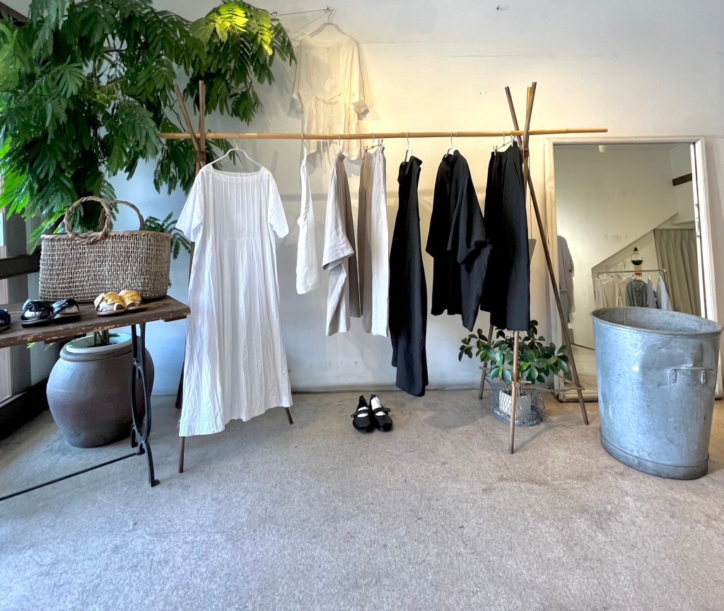 B 5月 2, 20245月 2, 2024 ~ atelierbyou いいお天気になりましたね。 Bの前は静かです。 こんな感じの店内です。 お休みの間どうぞ遊びに来てくださいね。 今着るもの満載です。