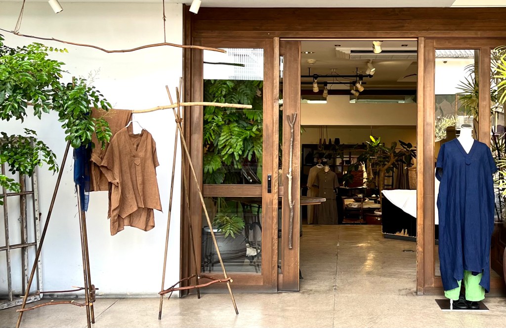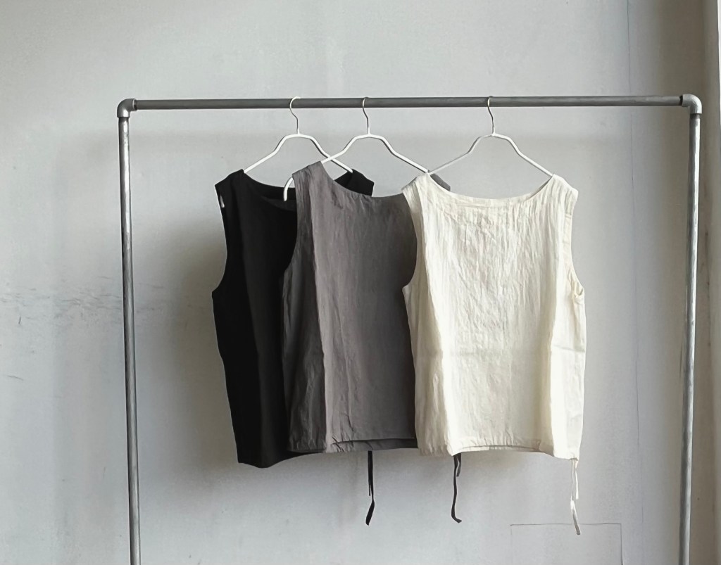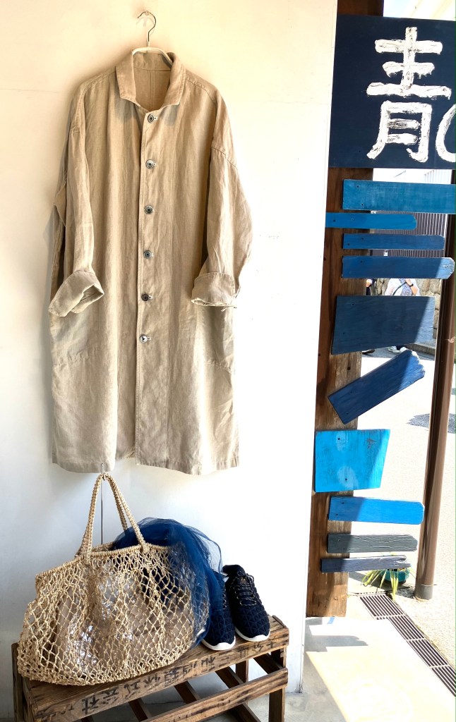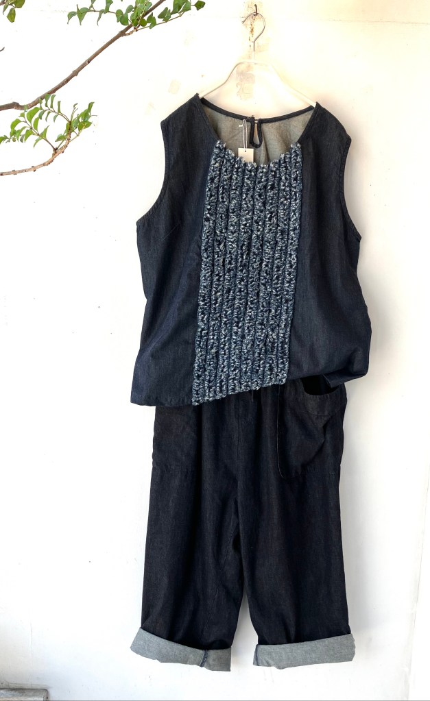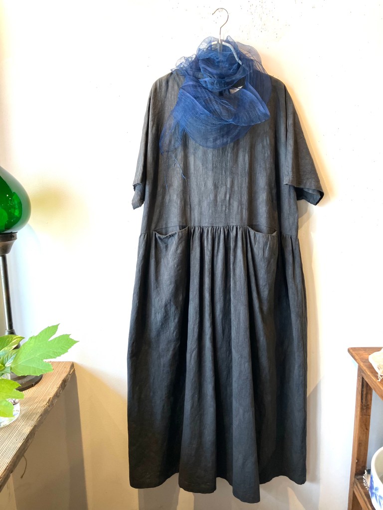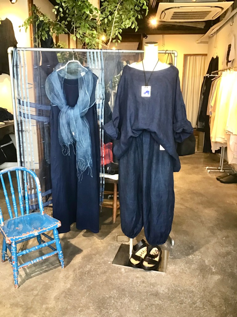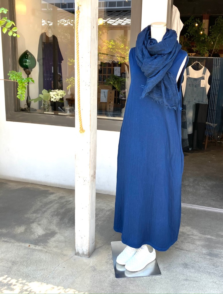 今日の青ao 6/1 6月 1, 2024 ~ atelierbyou 高城染工 リネンヘリンボンふんわりパンツ(藍染) ショルダーギャザーブラウス(藍染) ワタノママノースリーブワンピース(藍染) foo 綿麻のロングワンピース・オンライン掲載中