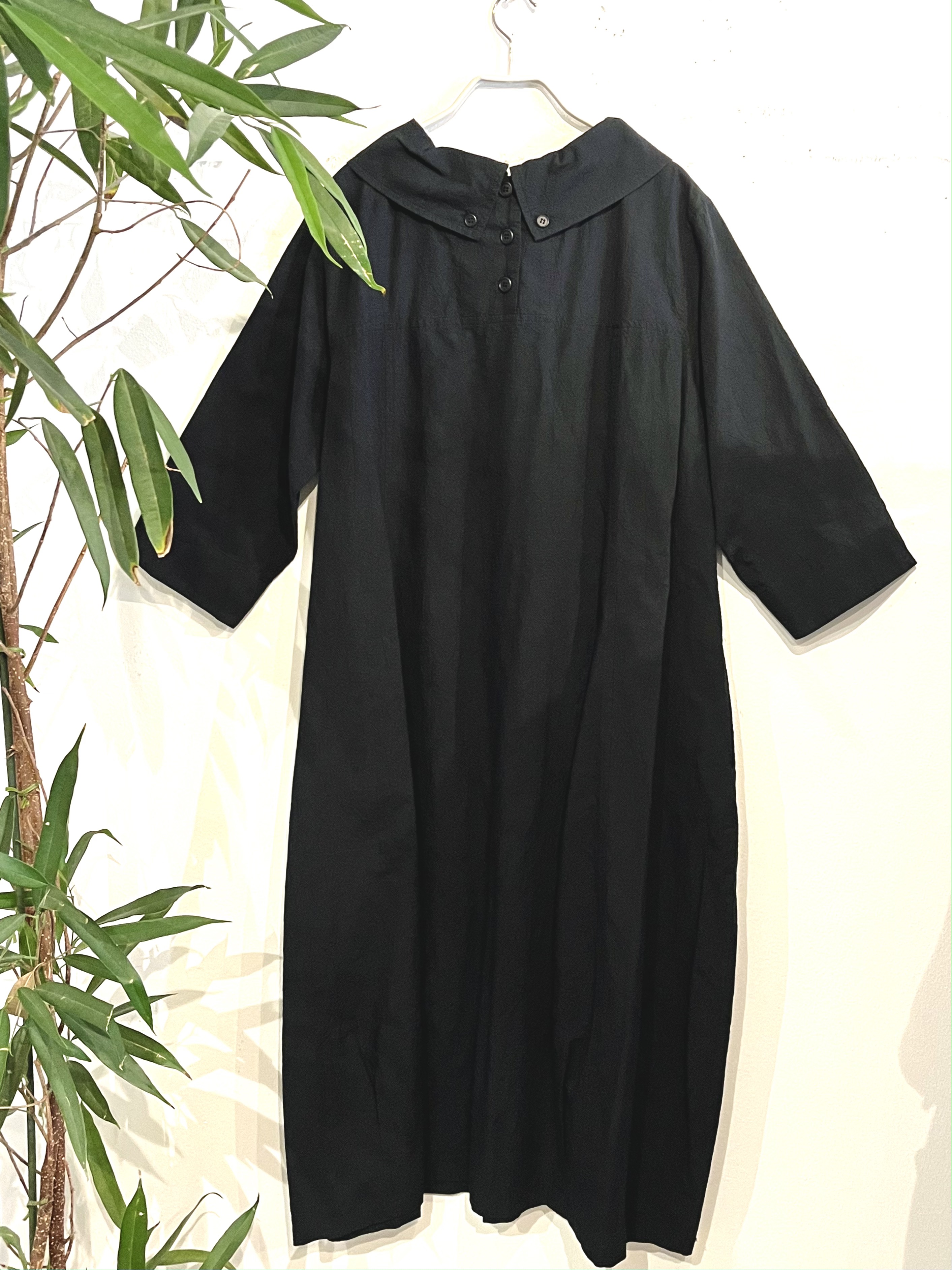 襟がとっても可愛い黒のシンプルなワンピースです。