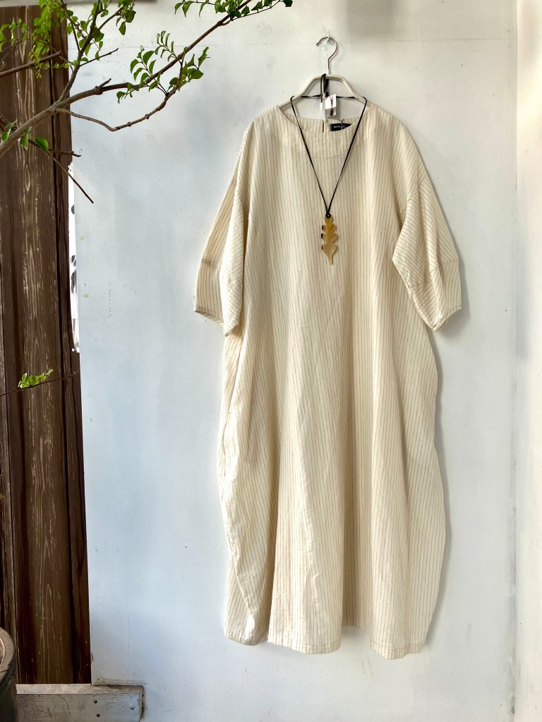 今日の青ao 7/3 7月 3, 2024 ~ atelierbyou 梅雨があけたような、なんとも言えない今日の暑さです。 メイアファボリの綿麻のワンピースに、陽で展示会をしてるBijoux Keiの木の葉のネックレスをしてみました。