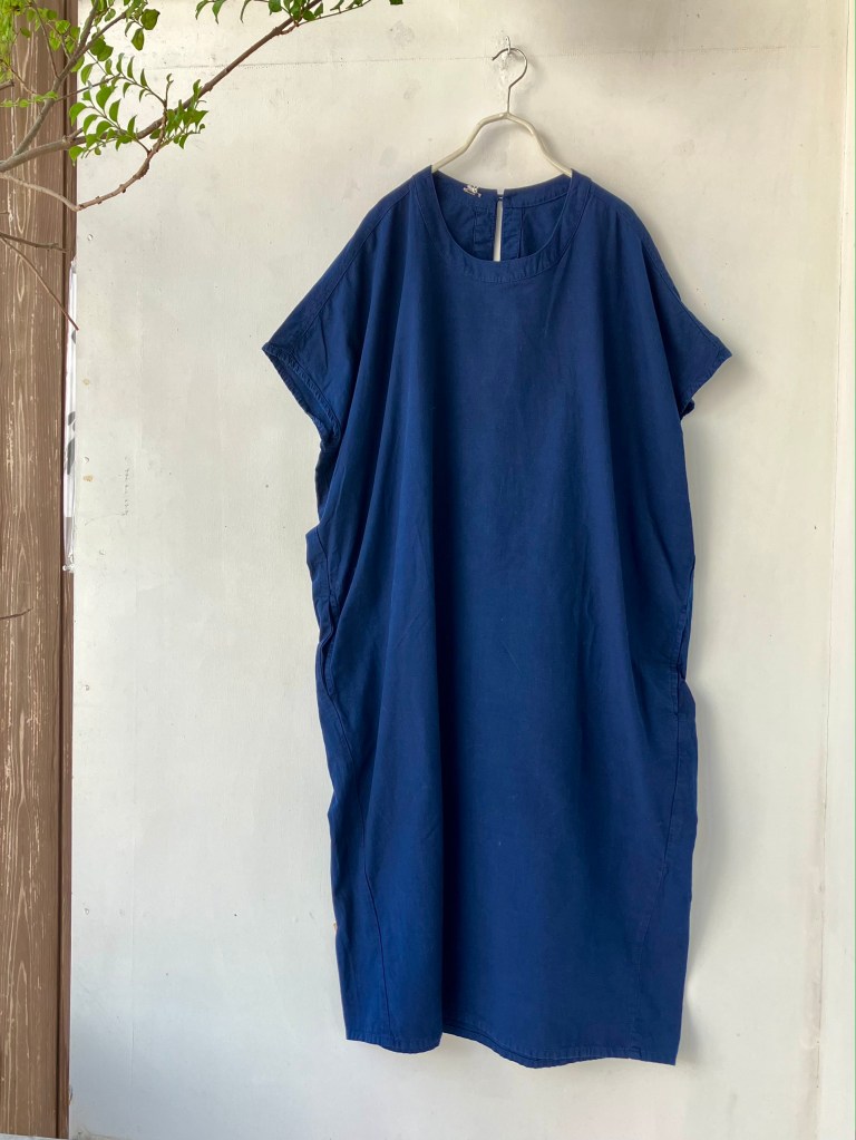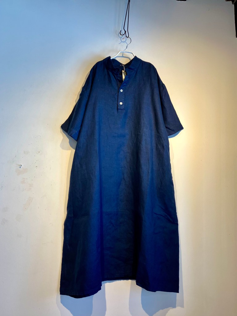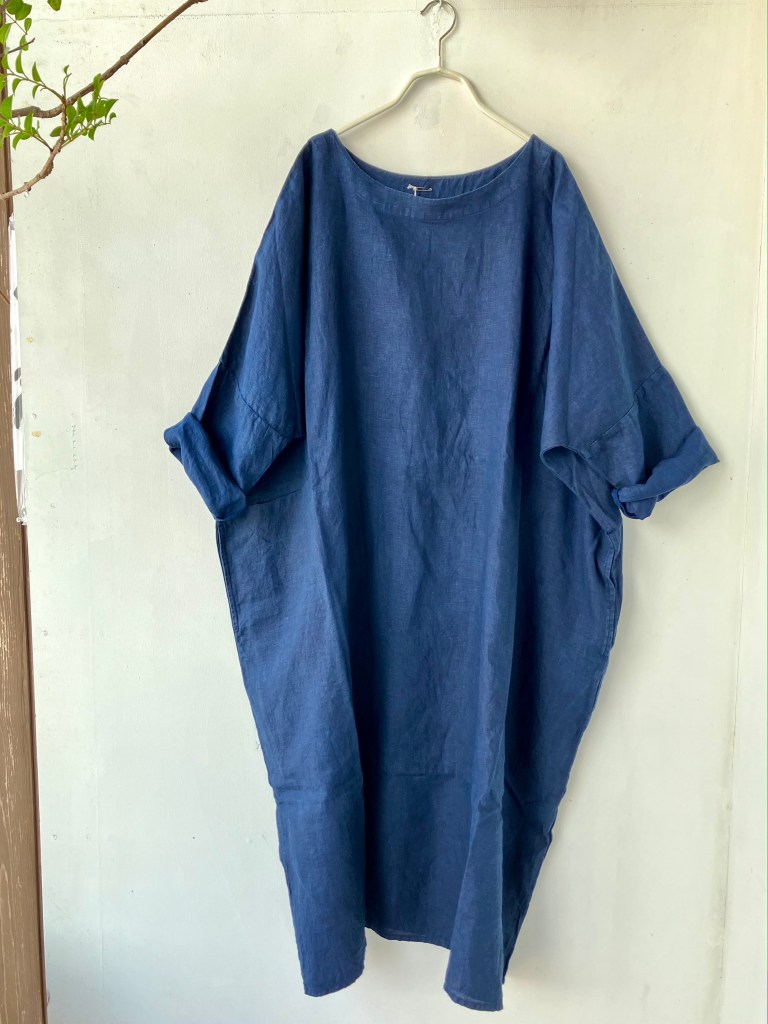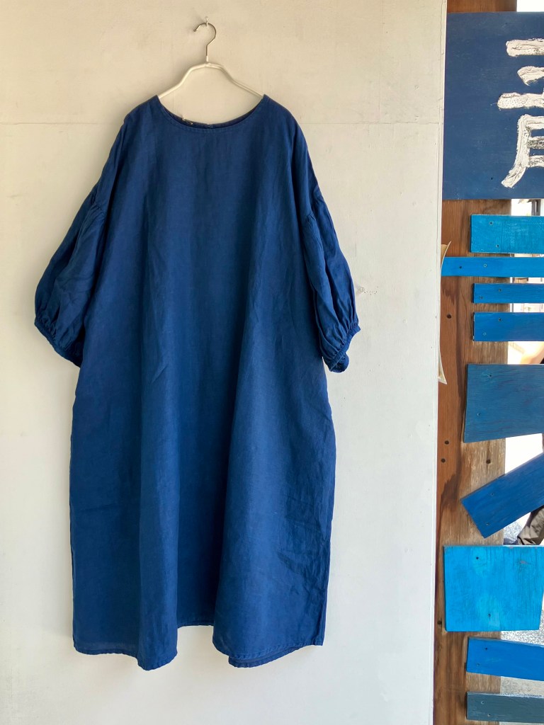 高城染工、リネン のワンピース、藍染、生成り、デニムと揃ってます。
