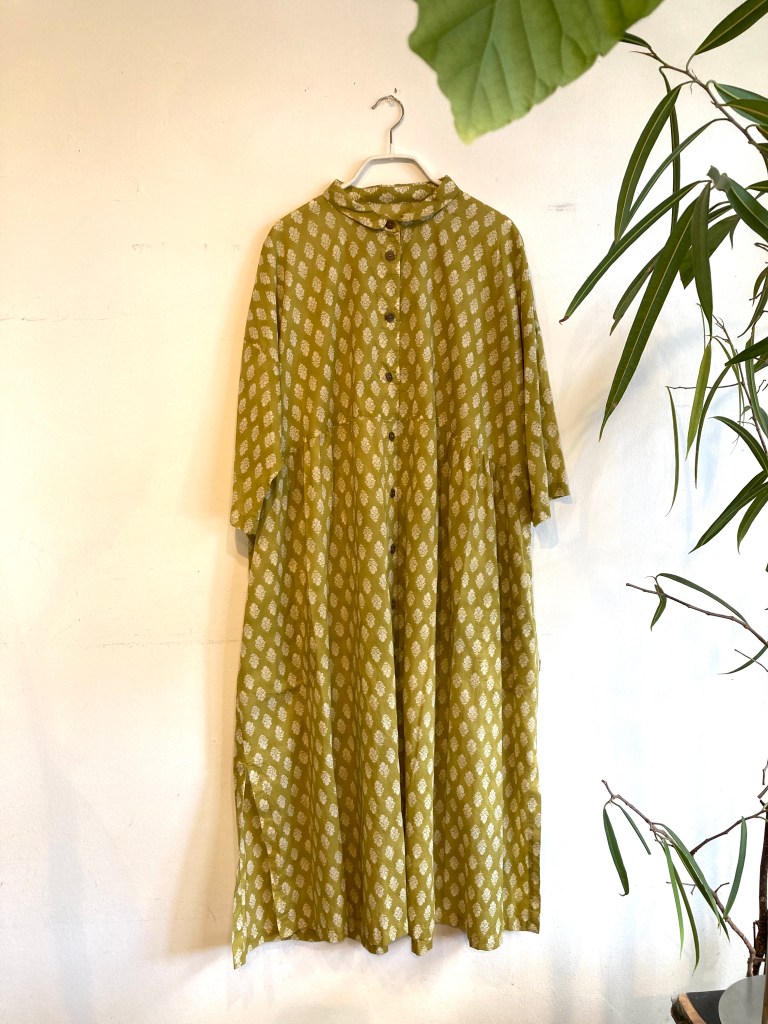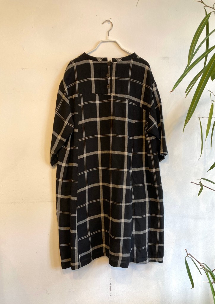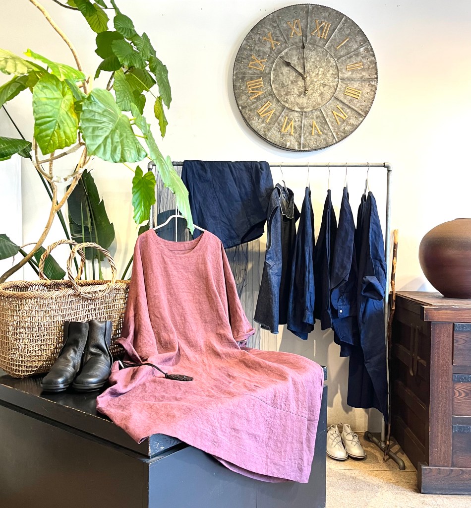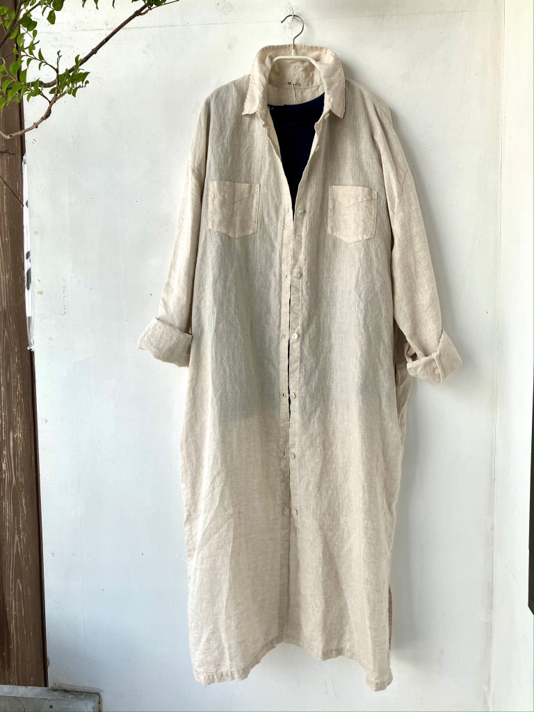 高城染工、リネン のワンピース、藍染、生成り、デニムと揃ってます。