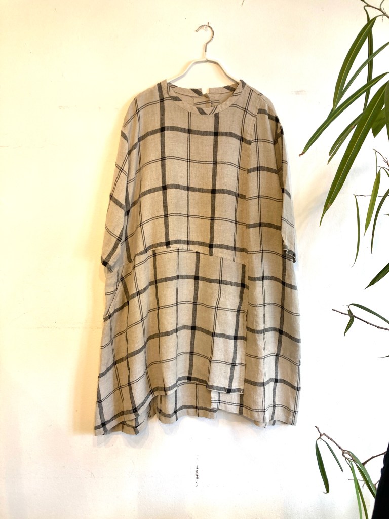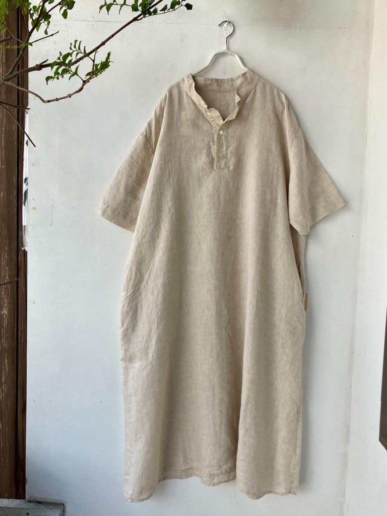 リネンのワンピース、夏は涼しく、1枚で、オールシーズン着れる優れものです。