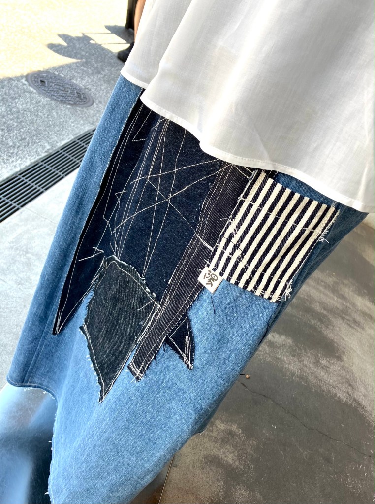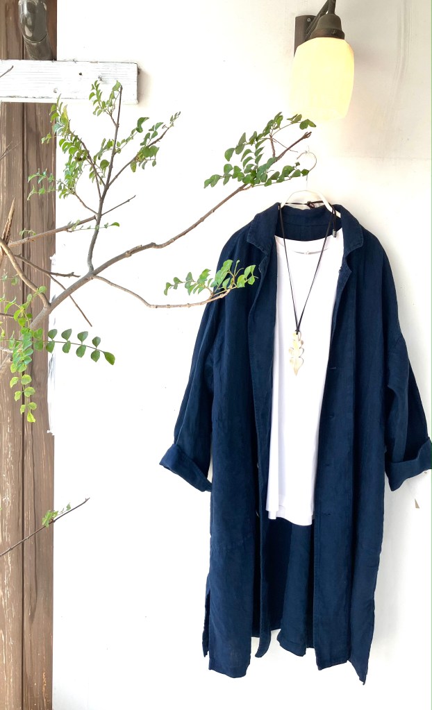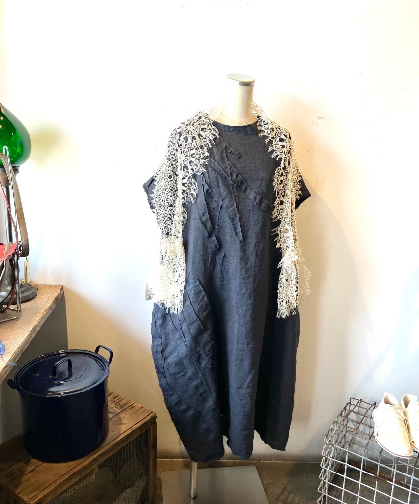 陽オリジナル麻ワンピース パッチの配置が絶妙です。