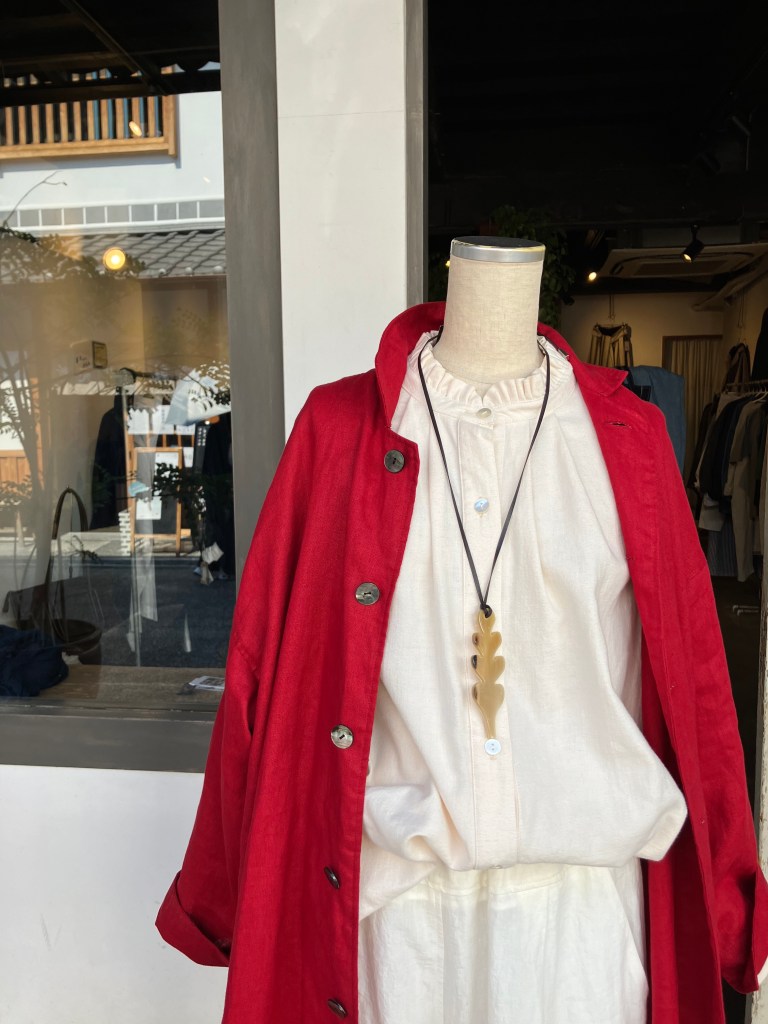 印象的な赤の麻コート