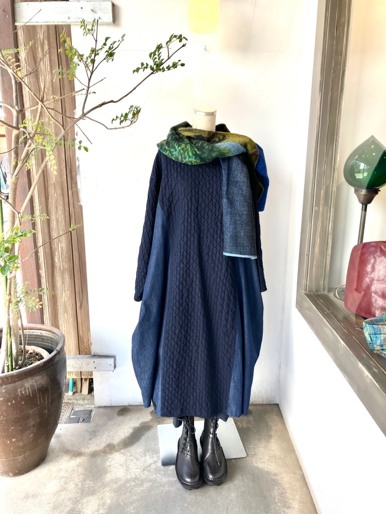 10月12日 青ao 10月 12, 2024 ~ atelierbyou お出掛け日和の三連休初日です。 倉敷美観地区もたくさんの観光客で賑わっています。 秋物を見に青aoにも是非お越し下さいね。 メイアファボリ 異素材インディゴ染めワンピース